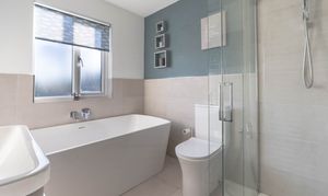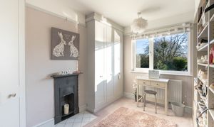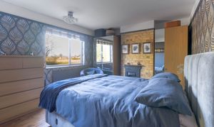 The first floor offers a generous main bedroom, featuring an attractive exposed brick chimney breast with a cast iron fireplace, a walk-in cupboard, and stripped wooden flooring. The second bedroom is a well-proportioned double room, also benefiting from an original cast iron fireplace and a comprehensive built-in range of wardrobes, shelving, and drawers. Completing the first-floor accommodation is a high-quality, modern bathroom, beautifully appointed with a stylish four-piece suite comprising a freestanding bath, separate shower enclosure, low-level WC, and wash basin. The room is finished with contemporary tiling and complemented by a sleek vanity unit incorporating useful storage. Thoughtfully designed, the bathroom offers a luxurious and relaxing space, combining practicality with elegant presentation.