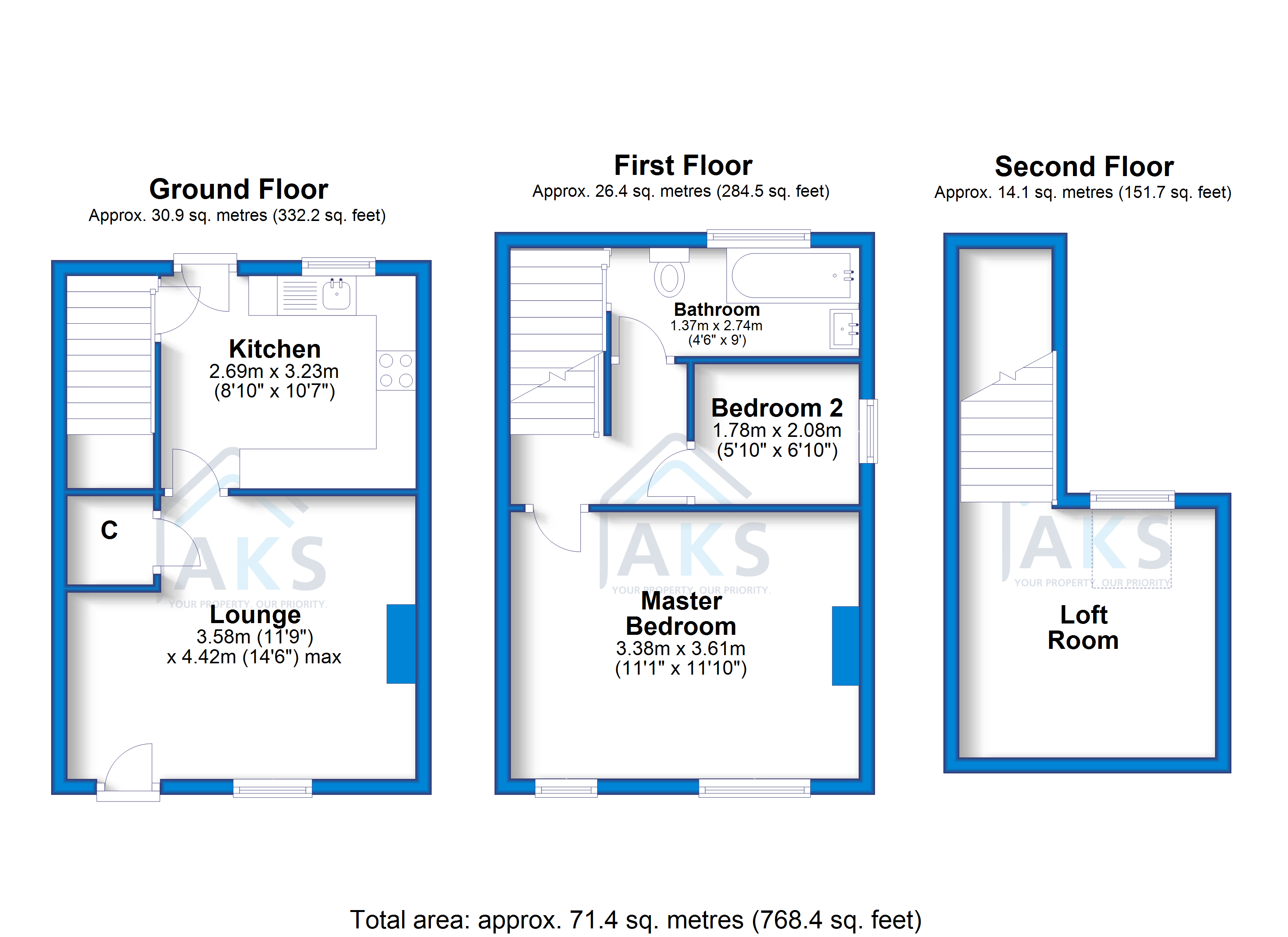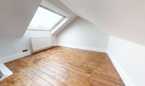 Upon entering the property the lounge has a bright and spacious feeling and is filled with natural light. There is a handy storage cupboard and a fireplace with a space that currently houses an electric style wood burner. Leading on through into the kitchen which is a bright room also, there are white brick style tiles for a neutral feel, along with ample cupboard space and room for under counter appliances. The back door from the kitchen leads out to the garden. Upstairs is accessed via a door through to a stairway from the kitchen. The master bedroom is a fantastic size and there is a further single bedroom too. The family bathroom consists of a bath with an overhead shower, a washbasin and a WC. Access to the loft room is via the bathroom and is a fantastic versatile space. There is a smart wooden floor laid and a large Velux window. Outside to the front of the property there is a small low maintenance yard which is entered via a gate. The rear of the house is accessed via a path to the side which leads to a great sized garden with heaps of potential. There is space for outdoor dining and a small outbuilding which could be used to store tools and furniture.