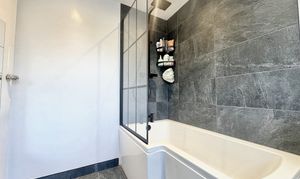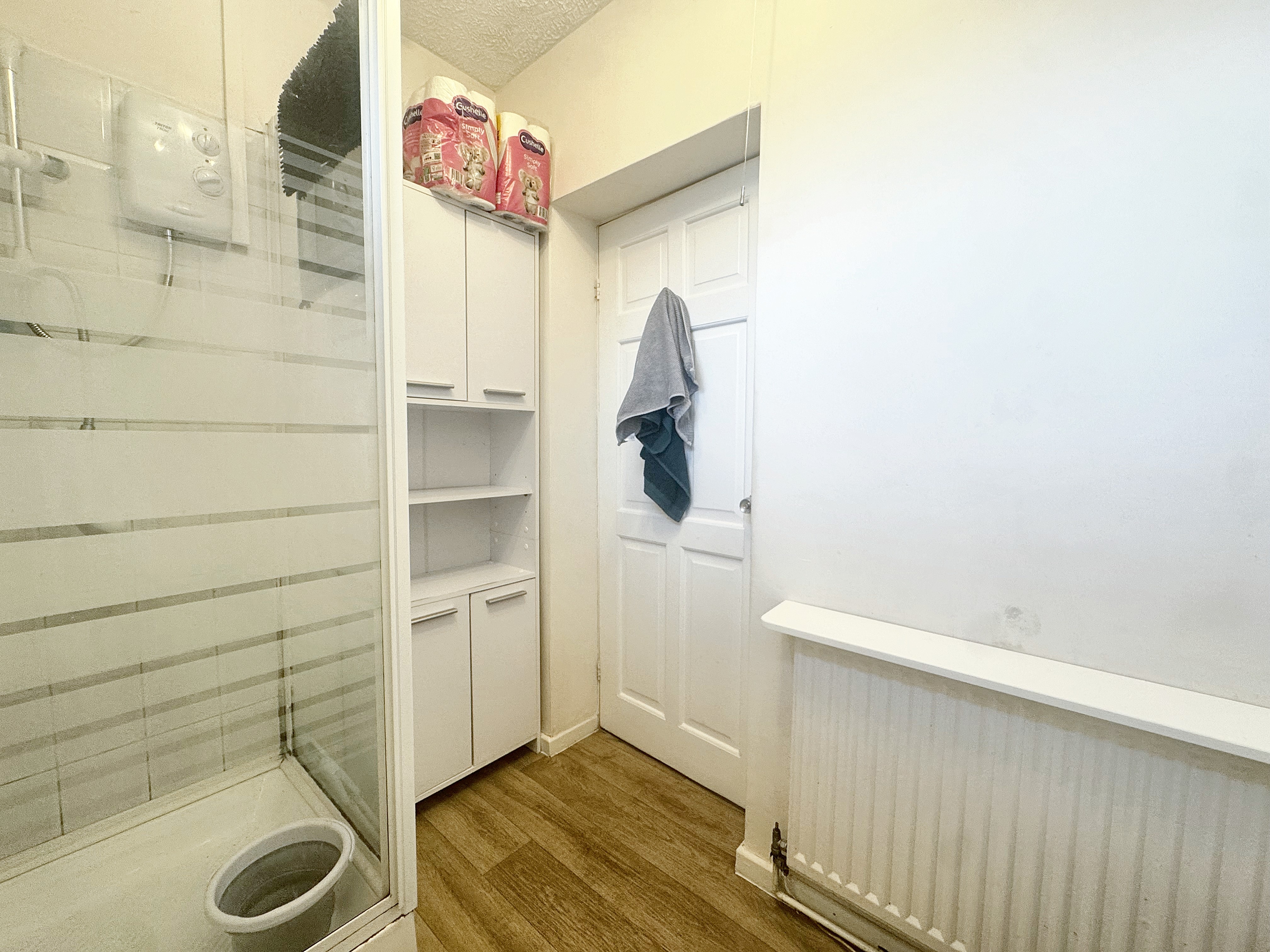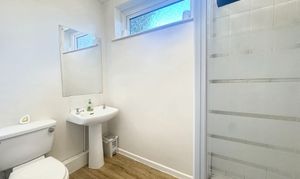 Windows to the side elevation. Modern fitted bathroom with shower over bath, low level W.C and wash basin. Spot lights.