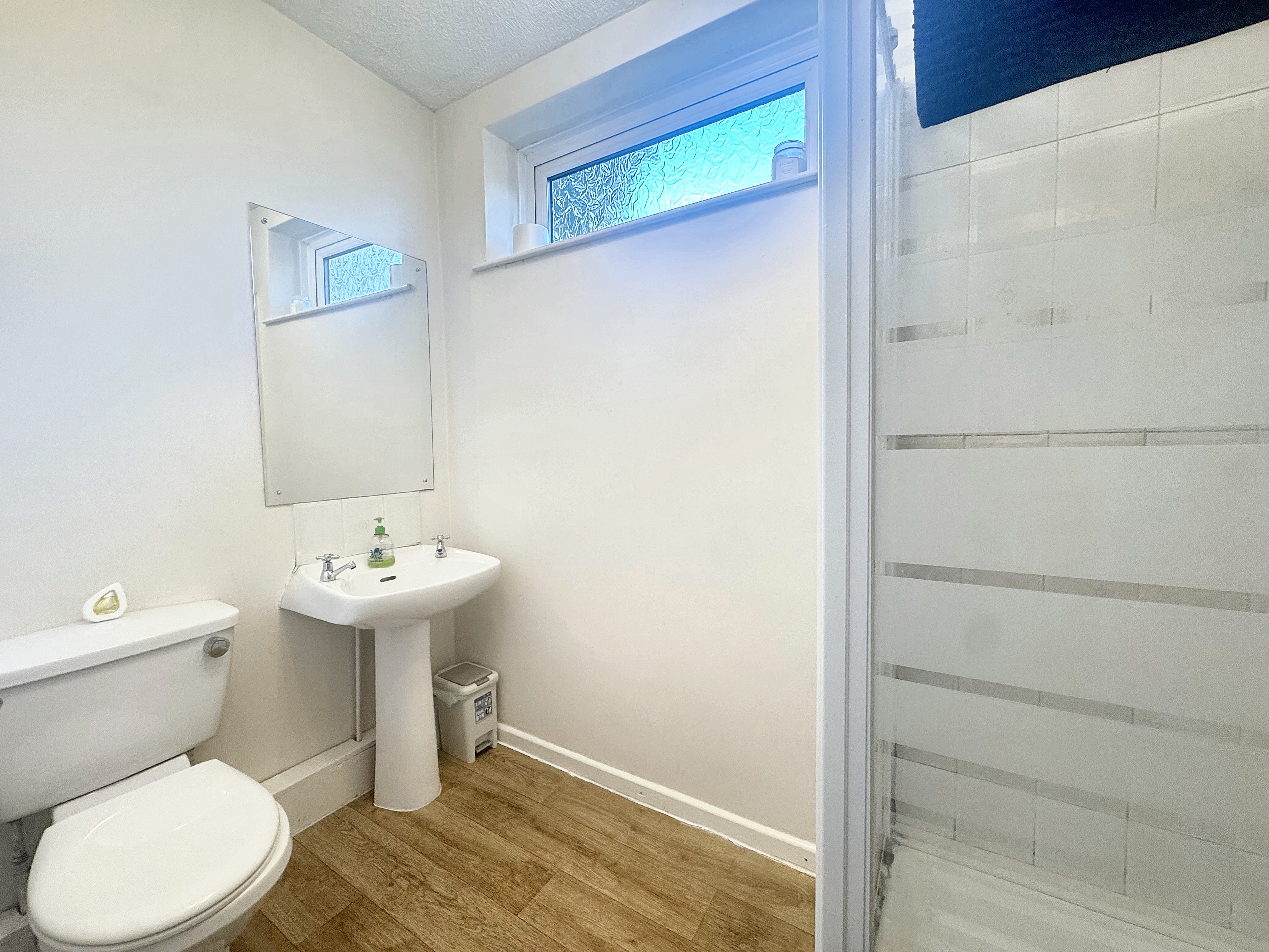 Window to the side elevation. A guest W.C/ground floor shower room with cubicle, guest W.C and wash basin.