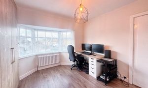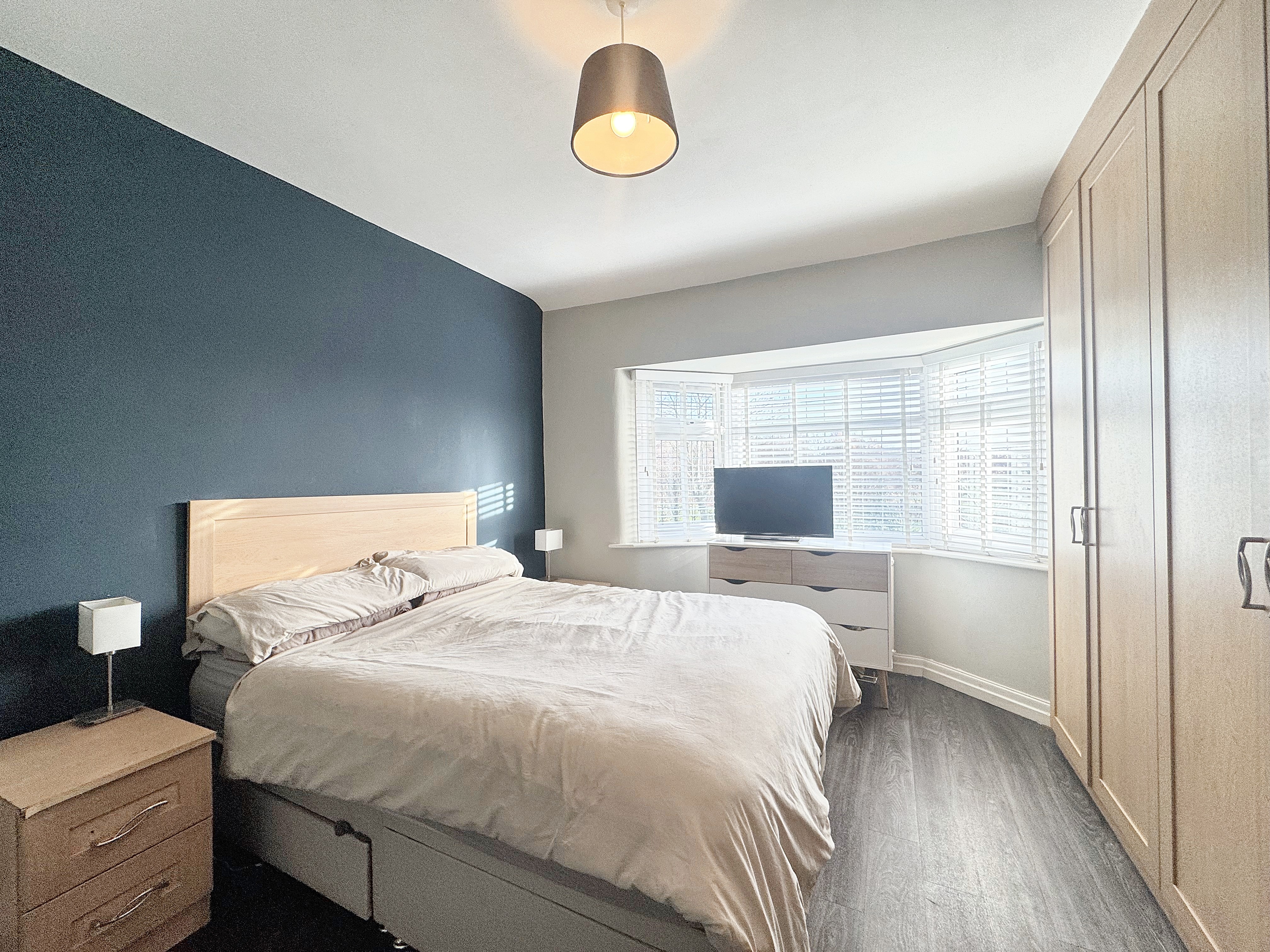 The property boasts three well-proportioned bedrooms, each offering flexibility to accommodate a growing family, home office, or guest accommodation. The principal bedroom enjoys an open aspect with views towards Ellesmere Golf Club, adding a touch of tranquillity to every-day living. The modern family bathroom is finished to a high standard, incorporating quality fittings, a sleek suite, and stylish tiling for a fresh and contemporary feel.