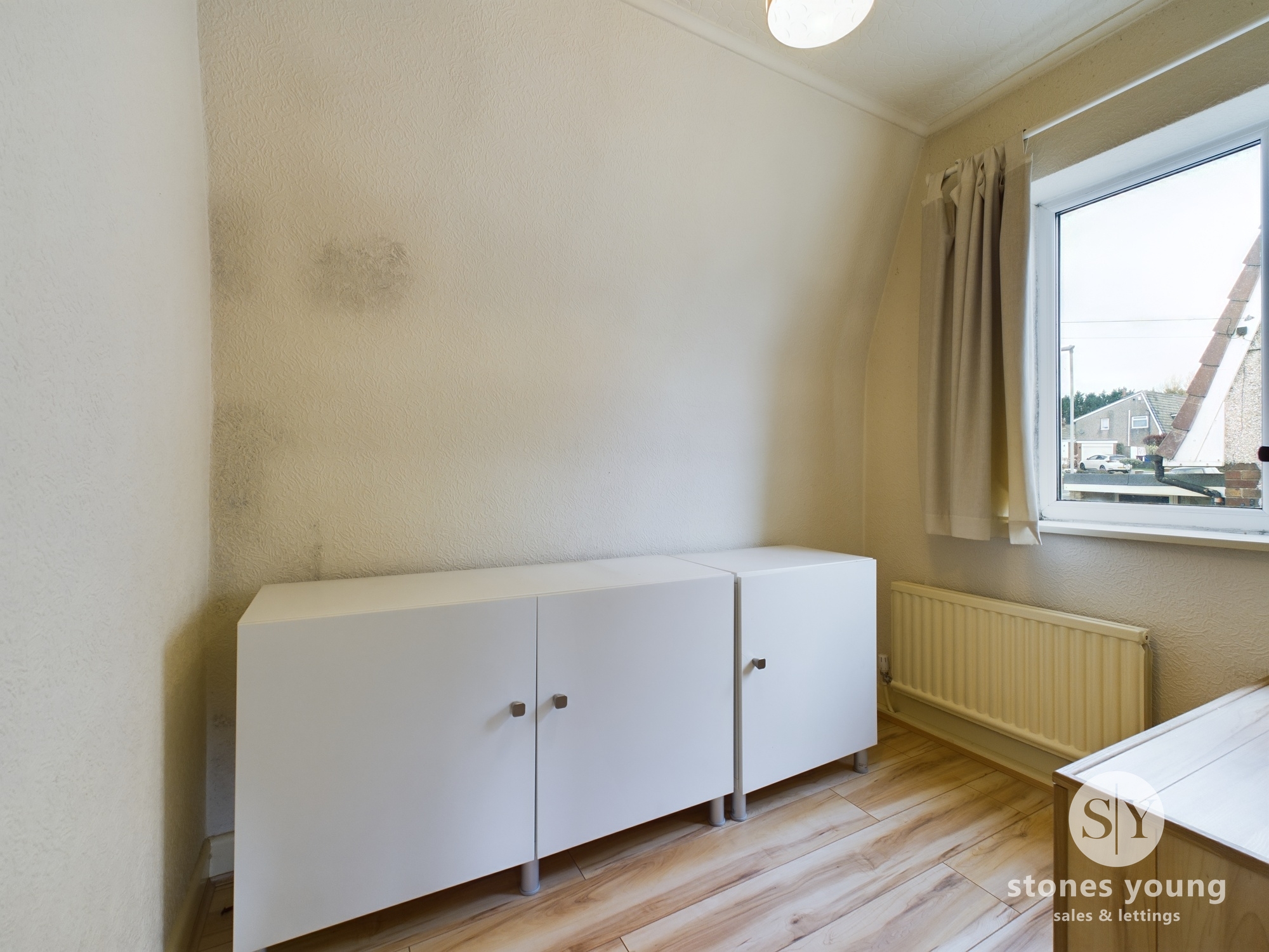 Laminate flooring, panel radiator, uPVC double glazed window.