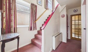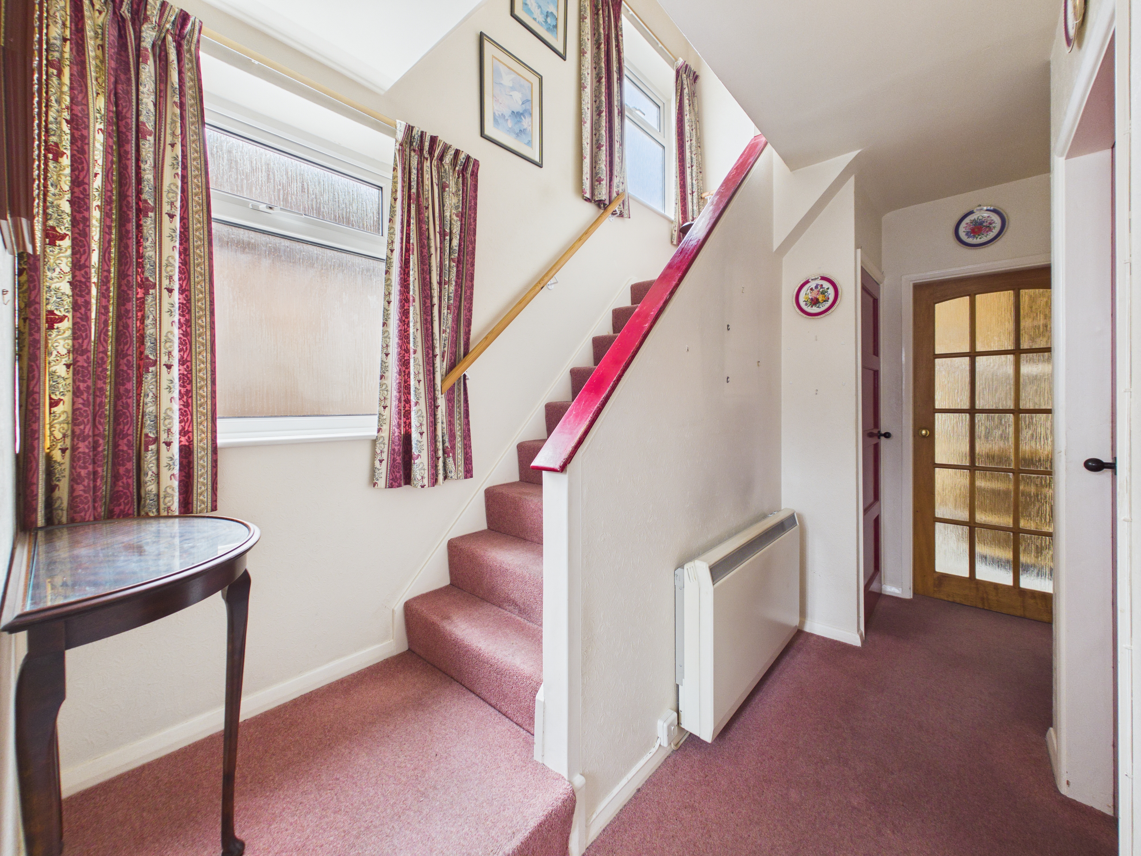 The property is approached through a welcoming entrance hallway which sets a pleasant tone for the accommodation. The hallway provides a useful storage cupboard alongside a practical understairs pantry, offering excellent everyday storage solutions.