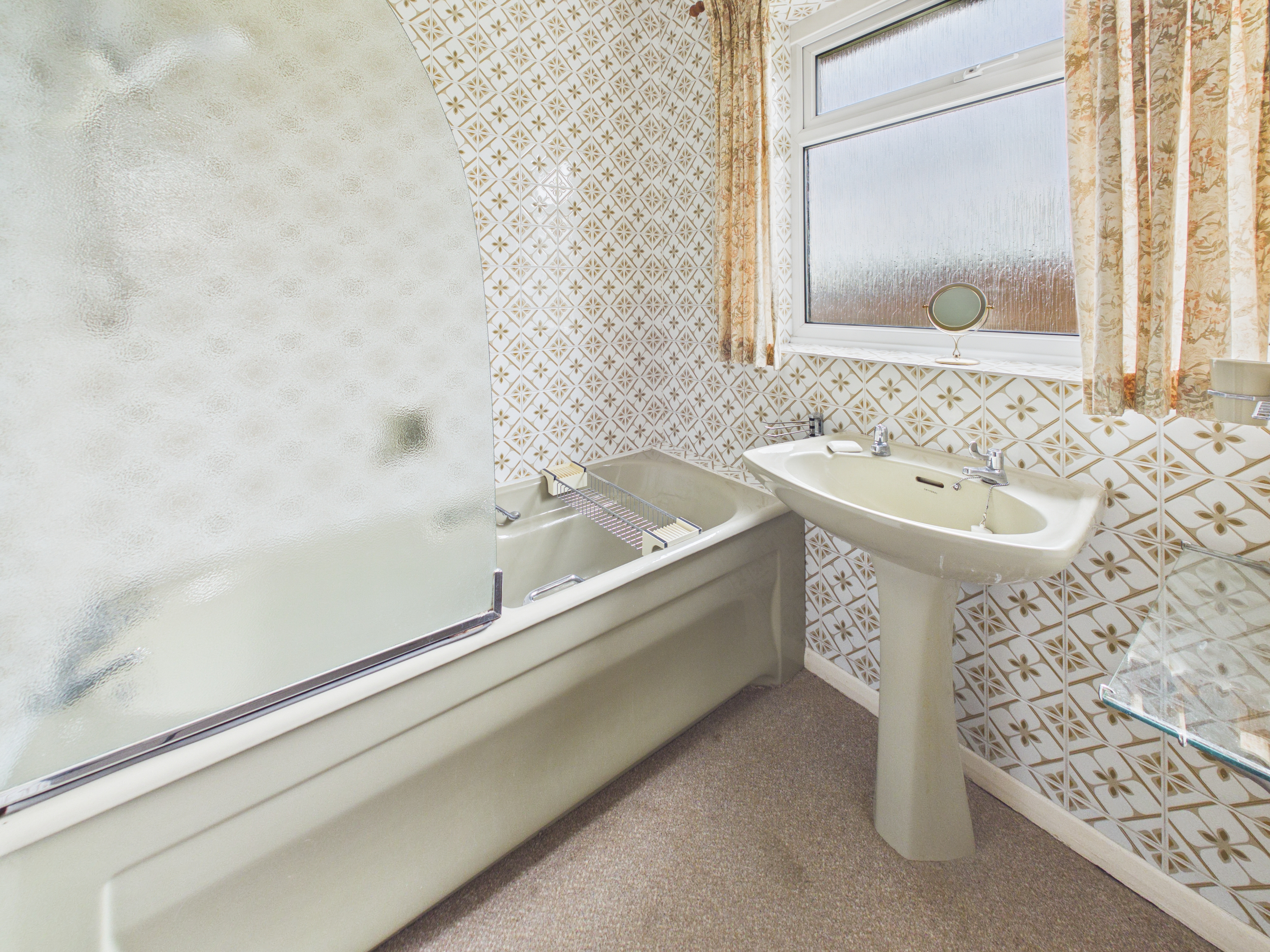 - Good-sized three-piece bathroom suite with electric shower over the bath