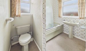 Stairs rise to a lovely landing which leads to the three double bedrooms and the bathroom. The main bedroom enjoys a front aspect and features an attractive bay window, creating a bright and spacious feel. The second bedroom benefits from fitted sliding door wardrobes and a vanity unit, offering useful built-in storage. The third bedroom also has useful built-in sliding door storage cupboards. Completing the first floor is a generous three-piece bathroom fitted with a bath with electric shower over, wash basin and WC. The room also benefits from a useful storage cupboard and loft access.