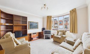 - Bright bay-fronted lounge featuring a charming focal point fireplace