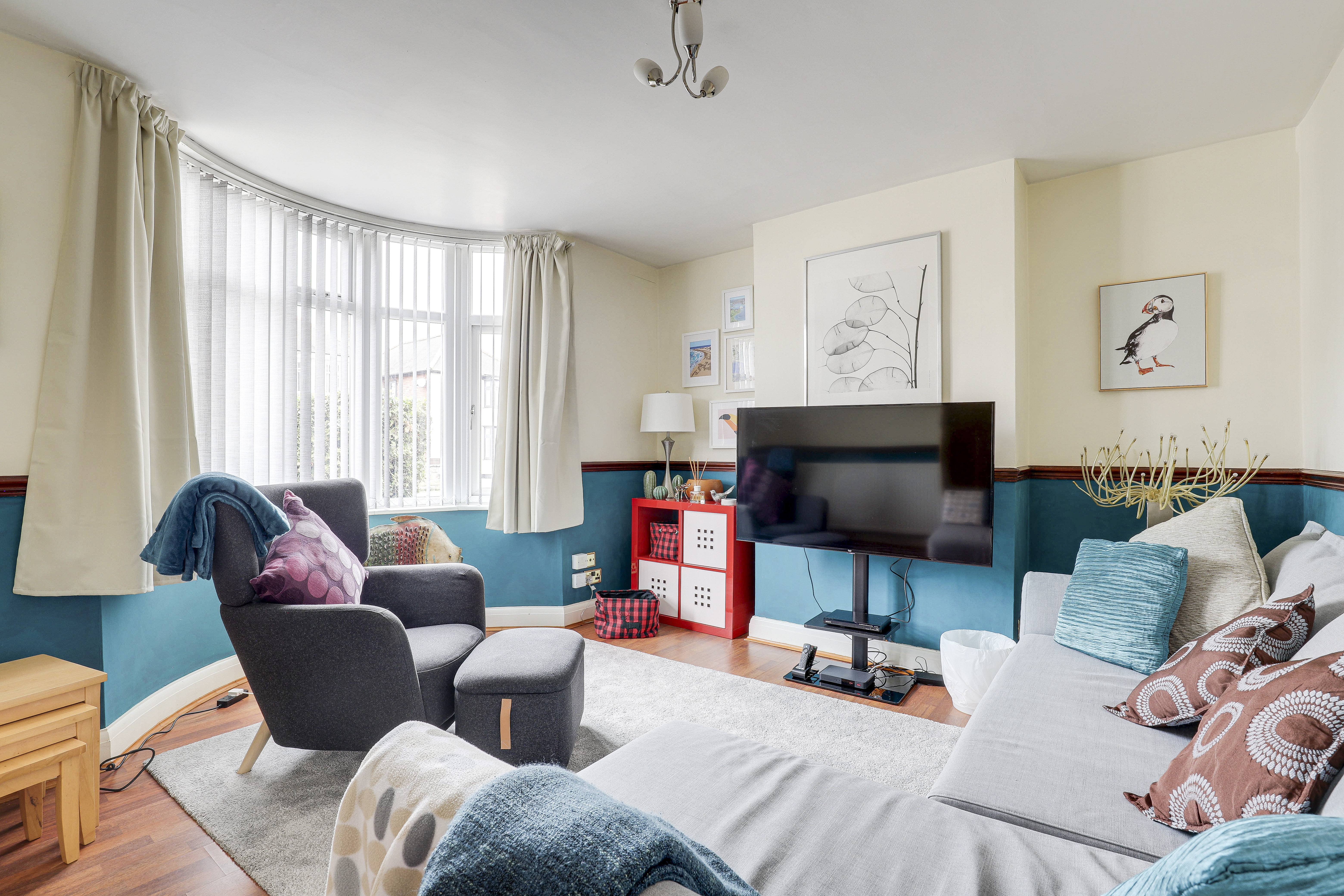 The sitting room has a UPVC double-glazed bay window to the front elevation, laminate flooring, a radiator and a dado rail.