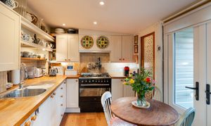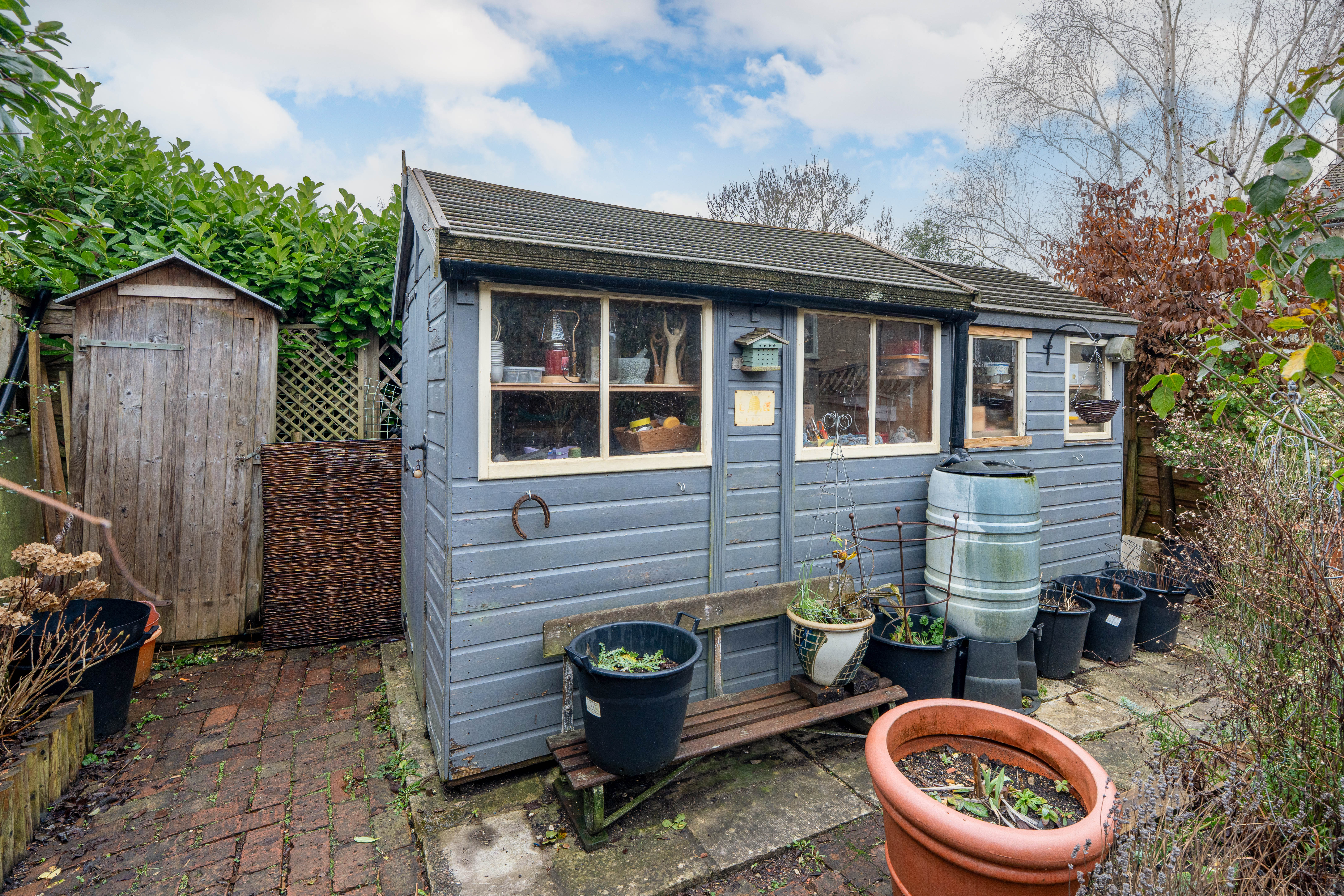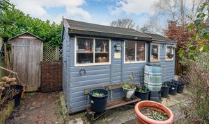 Outside, the low-maintenance enclosed cottage garden is attractively planted with mature shrubs and flowers, creating a peaceful and private retreat. There are a number of useful garden shed around the garden to provides additional storage.
