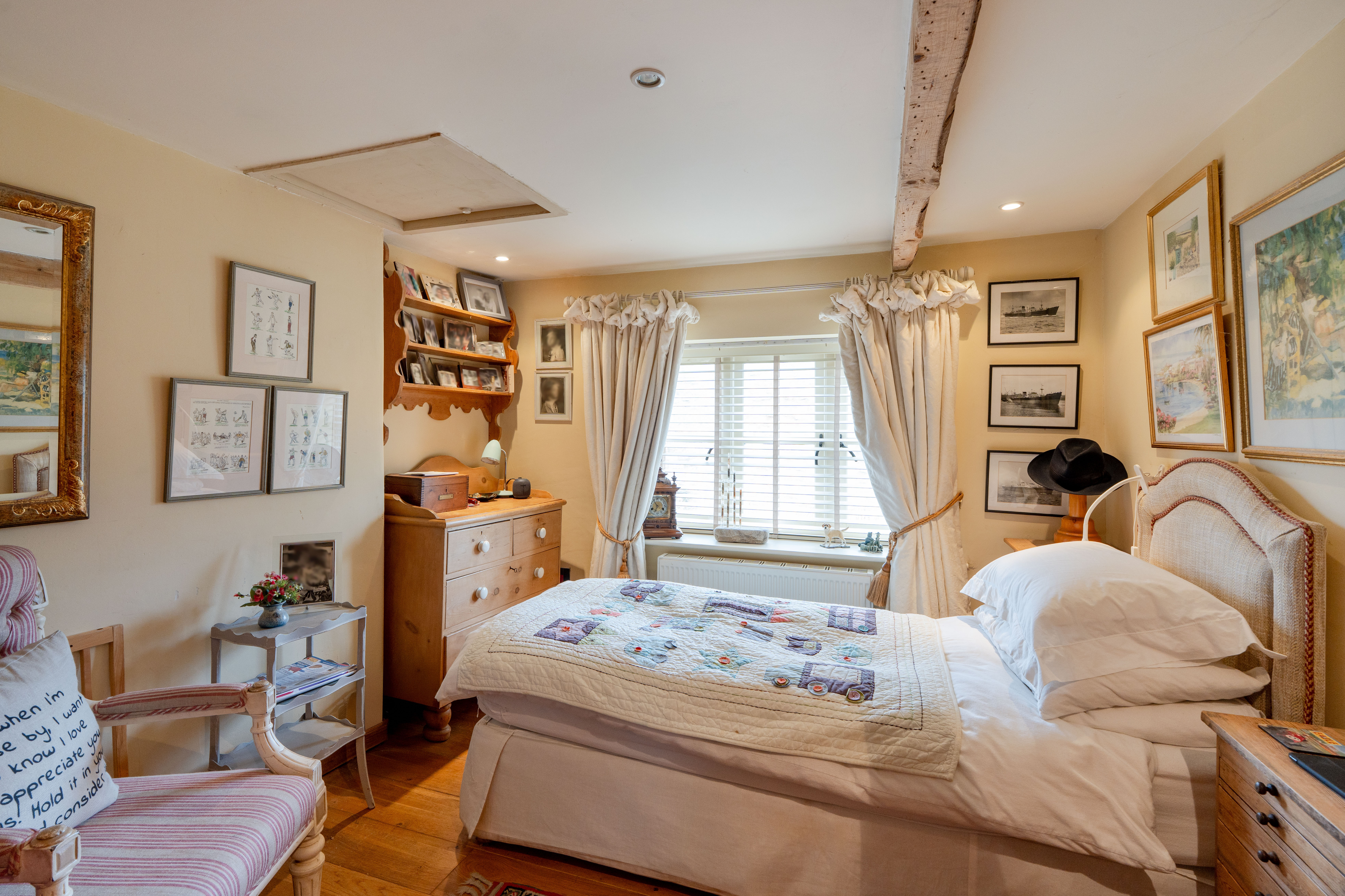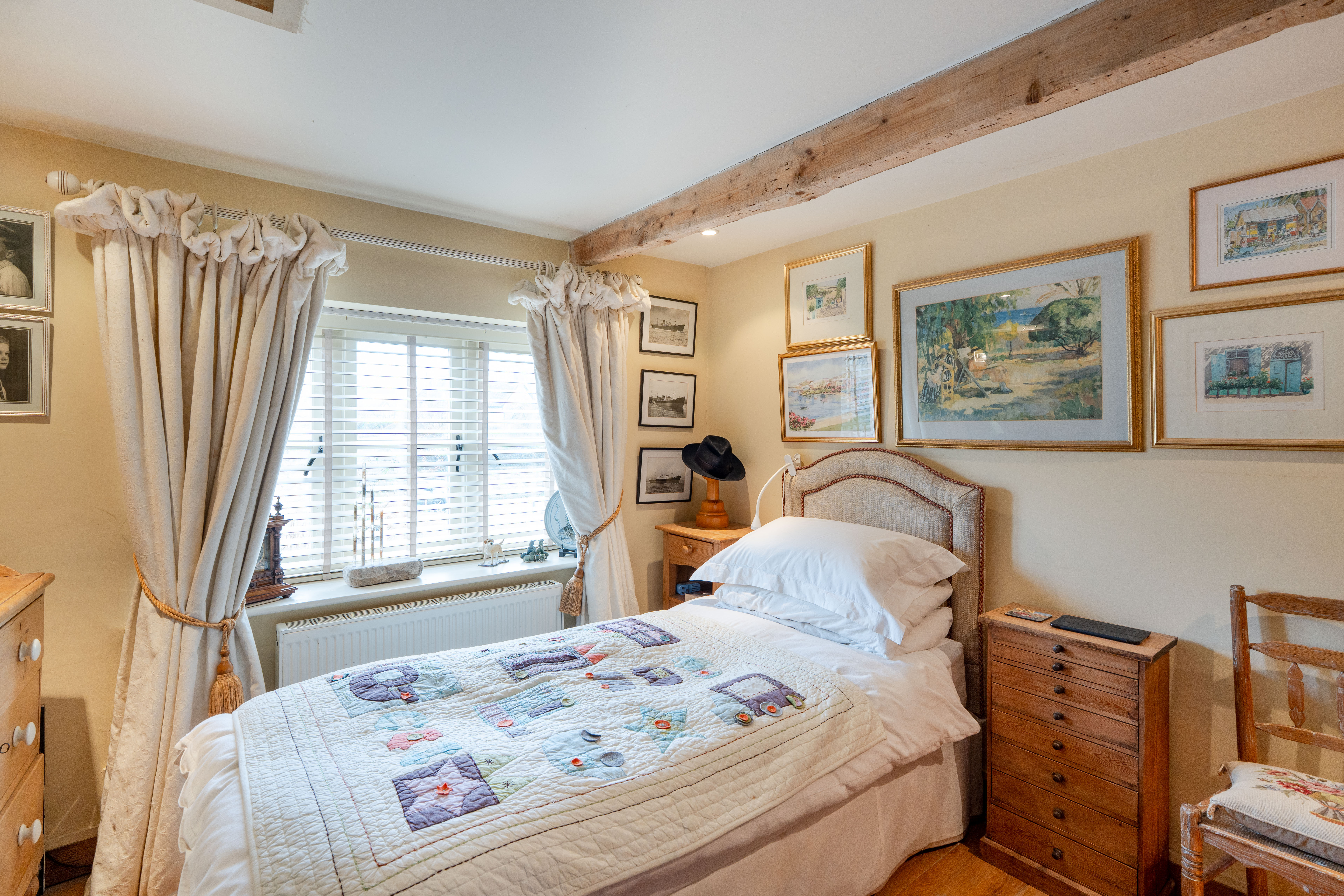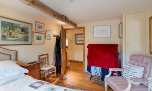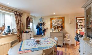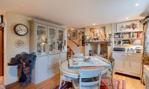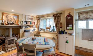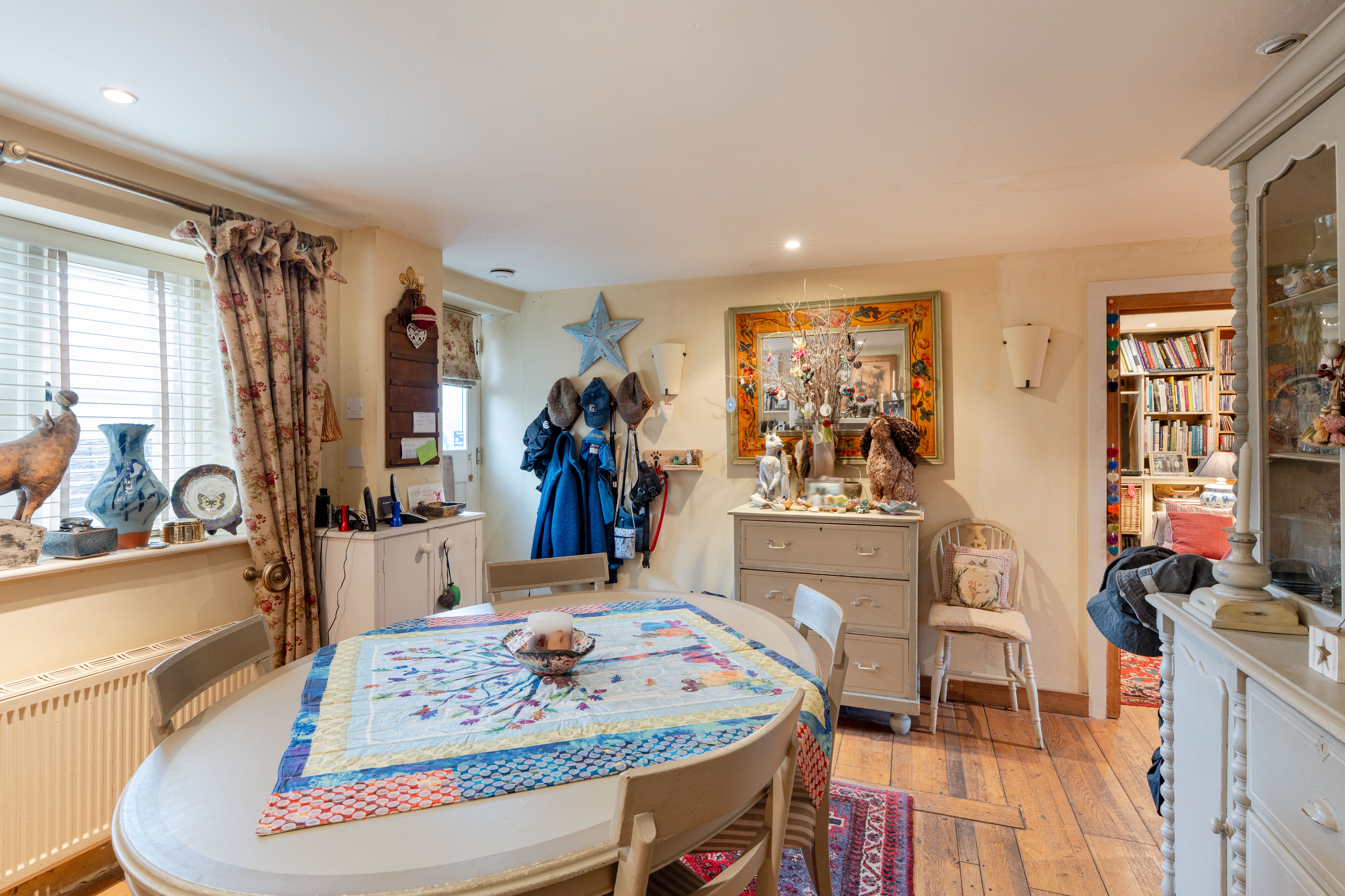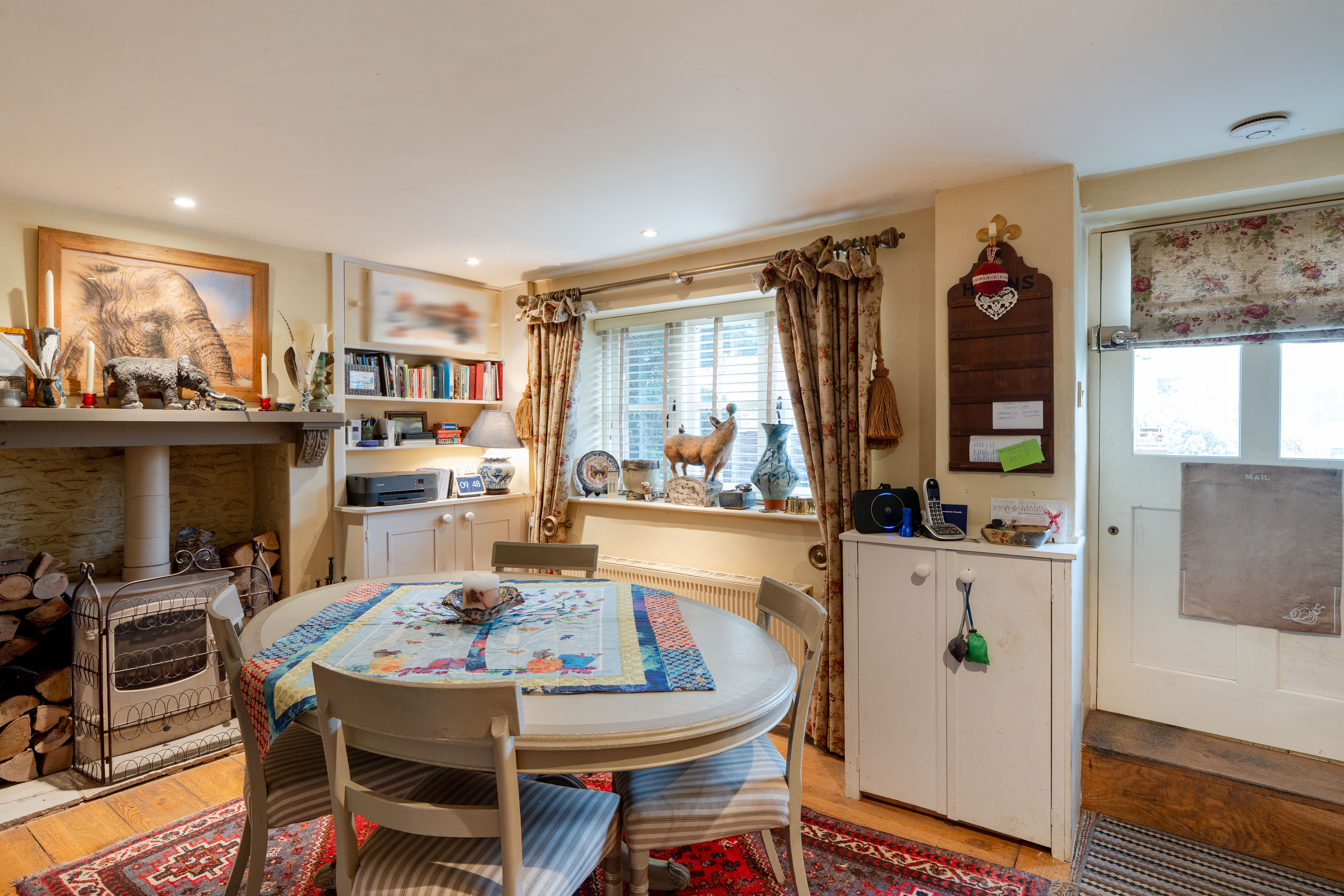 The property is entered via the first of two reception rooms, that is currently being used as a dining room with a feature wood burning stove. both rooms are to the front of the property and feature a number of exposed beams and the living also benefits from a focal fireplace, both creating warm and welcoming spaces perfectly suited for relaxing. To the rear is the fitted kitchen that provides ample storage and workspace and backs onto the enclosed gardens, this is also complemented by a separate utility room and a useful ground-floor shower room. On the first floor there are two bedrooms off the landing, both served by a contemporary shower room.