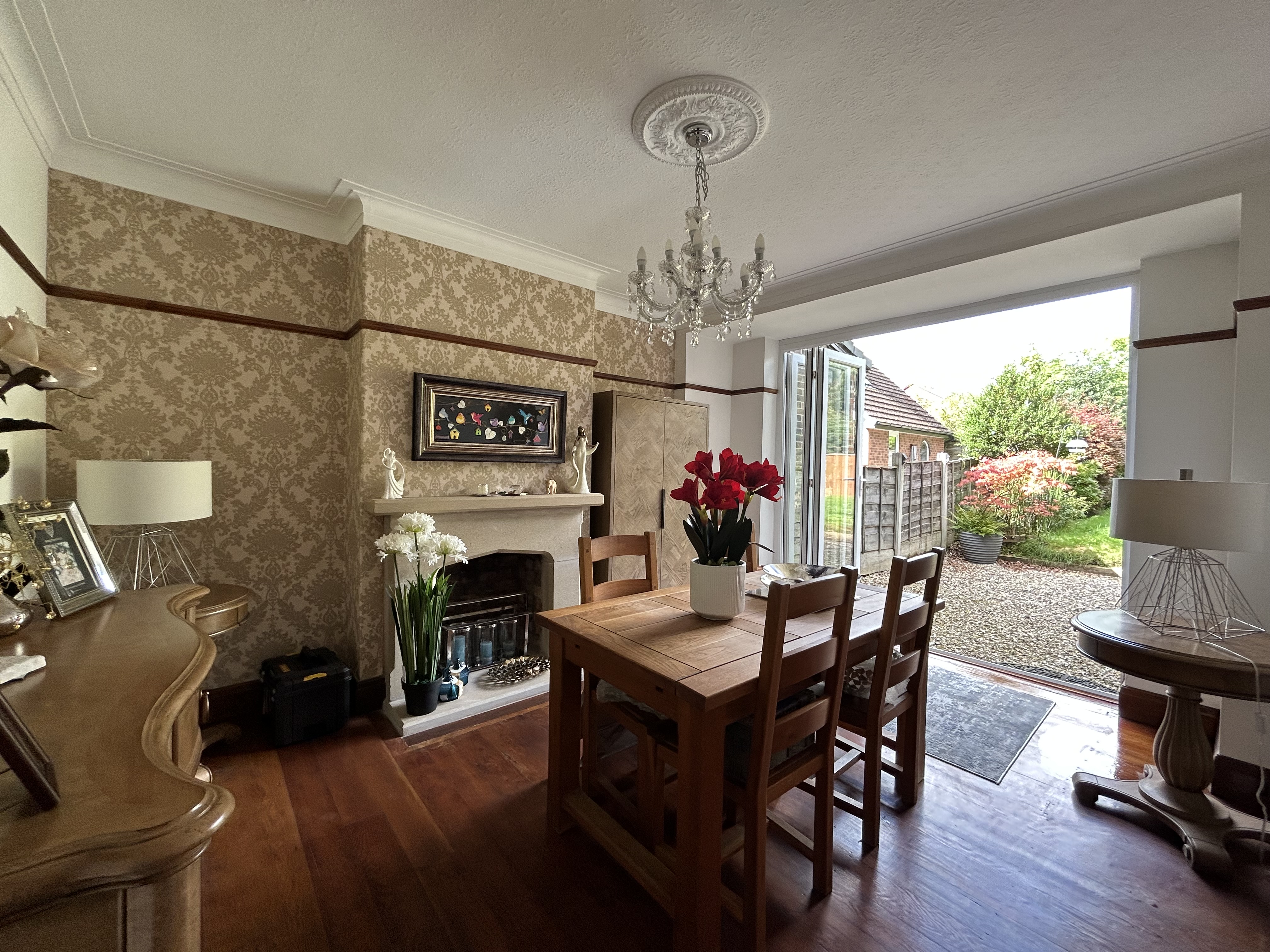 Bi-Folding doors to the rear elevations. Ceiling coving. Feature fire surround.
