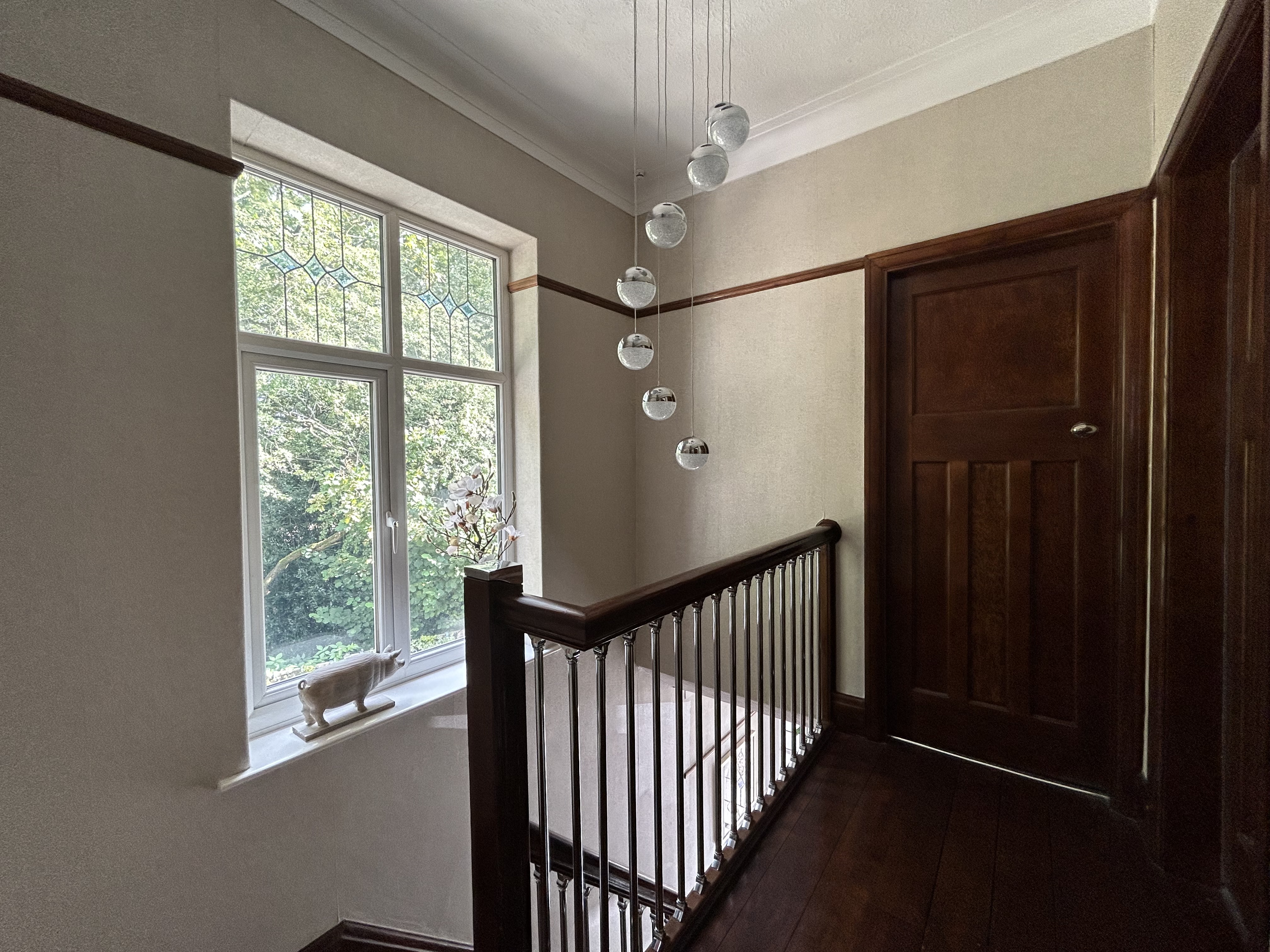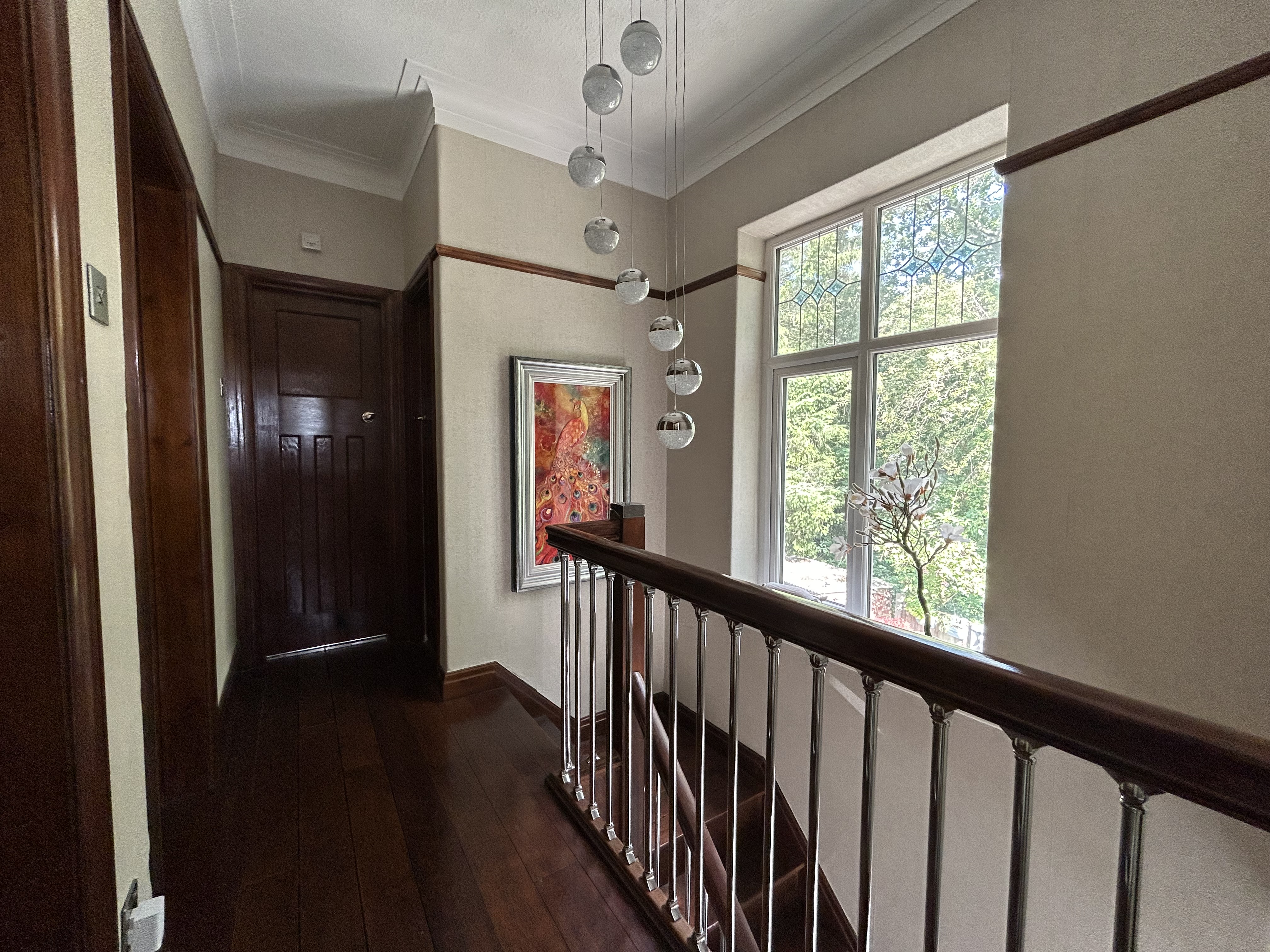Window to the side elevation. Ceiling coving. Spindle balustrade. Internal doors lead through to: