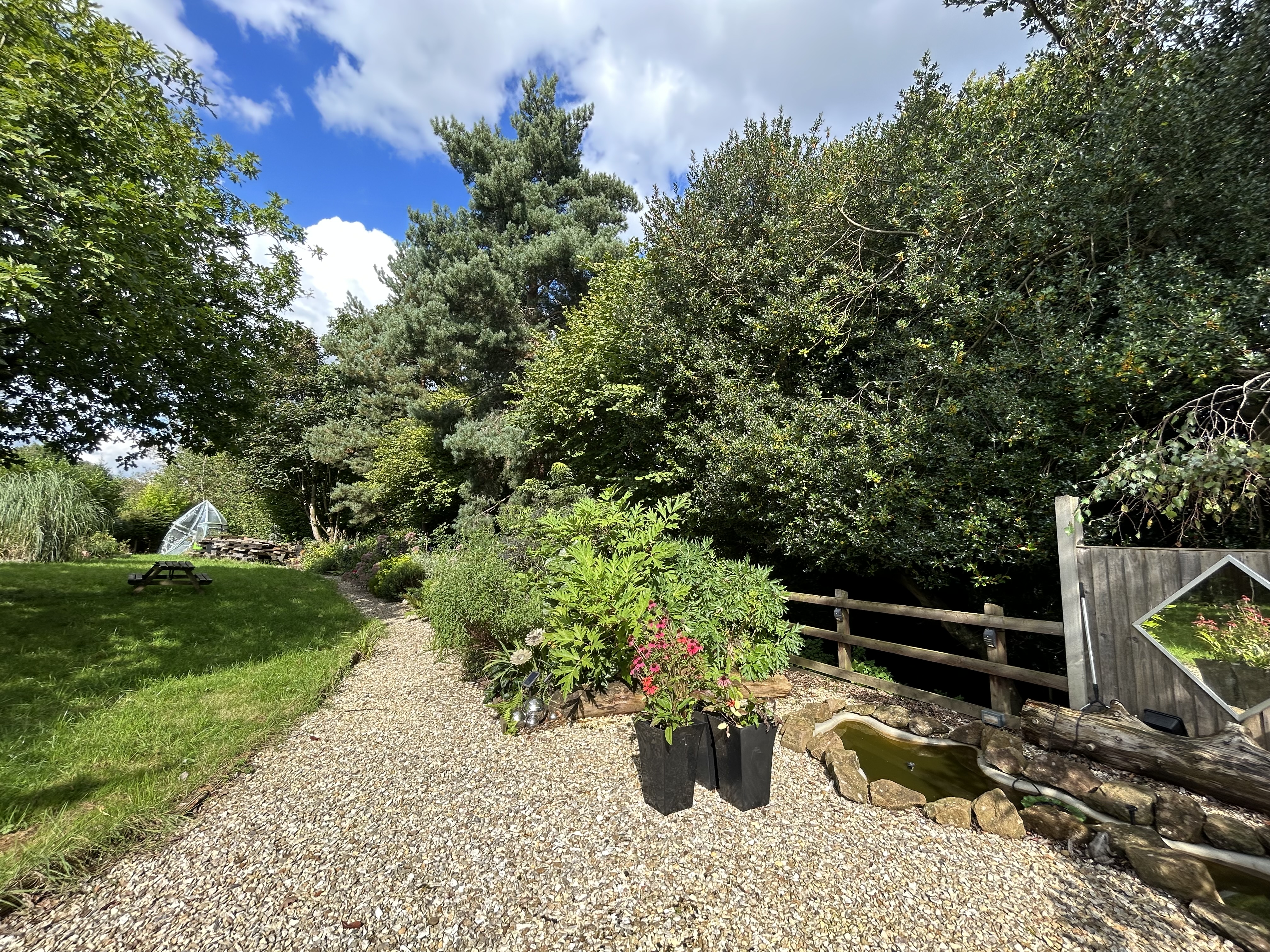 The property is set within a secure electric gated plot with a wealth of off road parking to the front. Double gates lead from the driveway to the side of the house which offers plenty of space to house gardens sheds (not included) and bins. The garden opens up to a large lawn area complete with mature planted borders. A bunker provides storage space for garden tools. The garden is private and not overlooked.