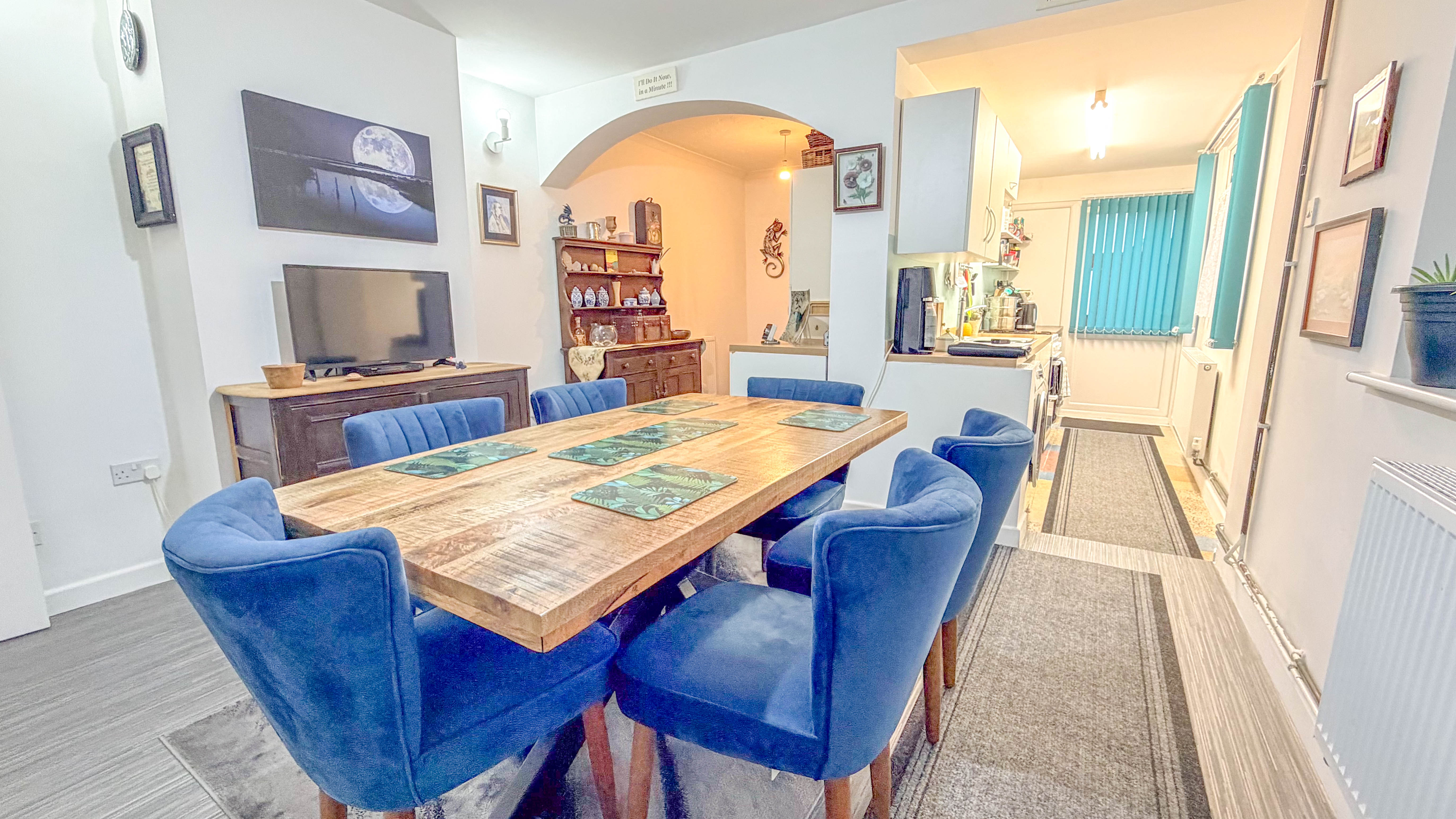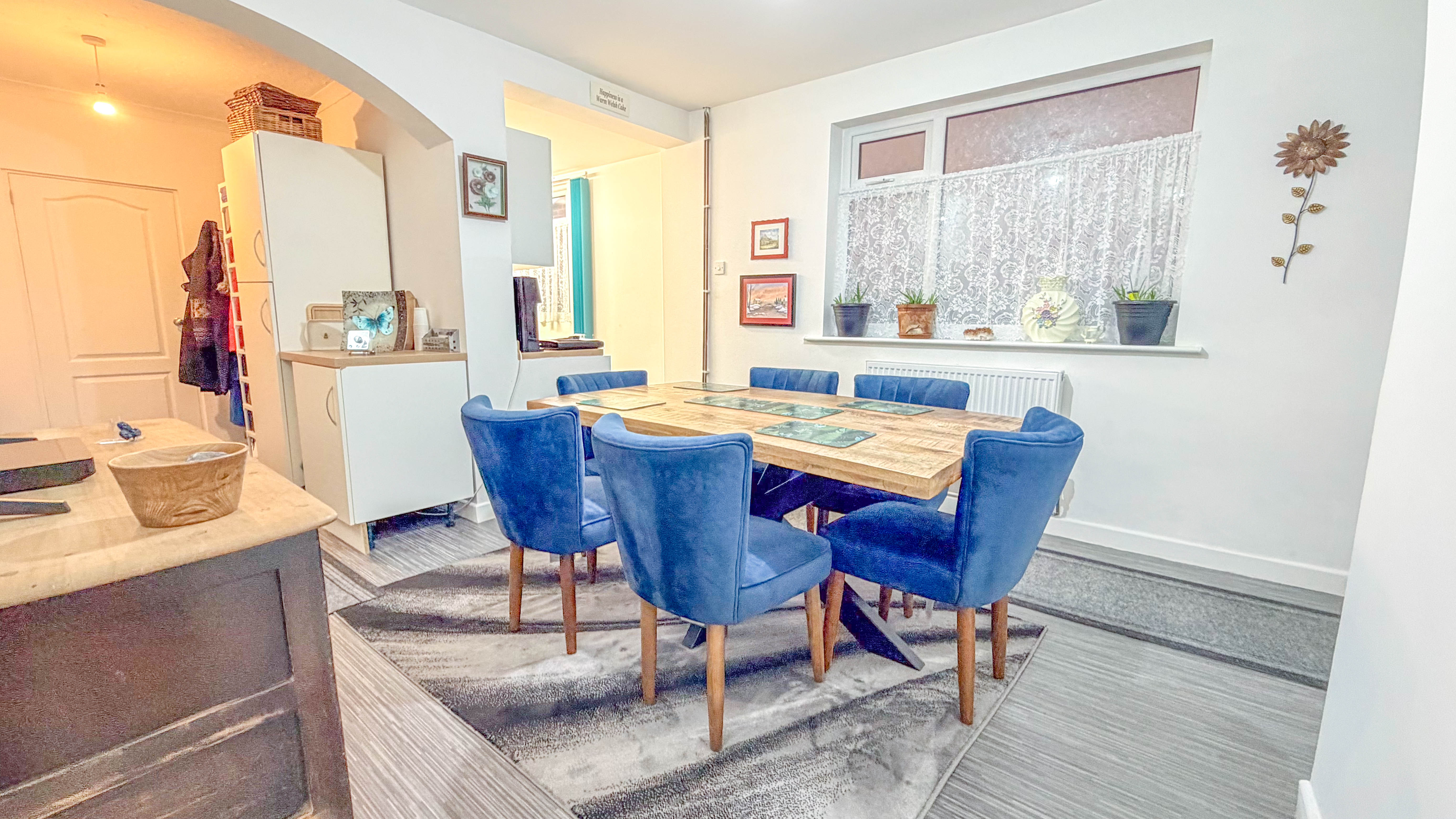 Inside, the accommodation offers generous and flexible living spaces. A warm and inviting lounge sets the tone, leading to a separate dining room ideal for both everyday meals and more formal gatherings. From here, there are openings to a cosy snug and to the kitchen, which is fitted with a range of units and practical work surfaces. A beautifully refitted bathroom completes the ground floor.