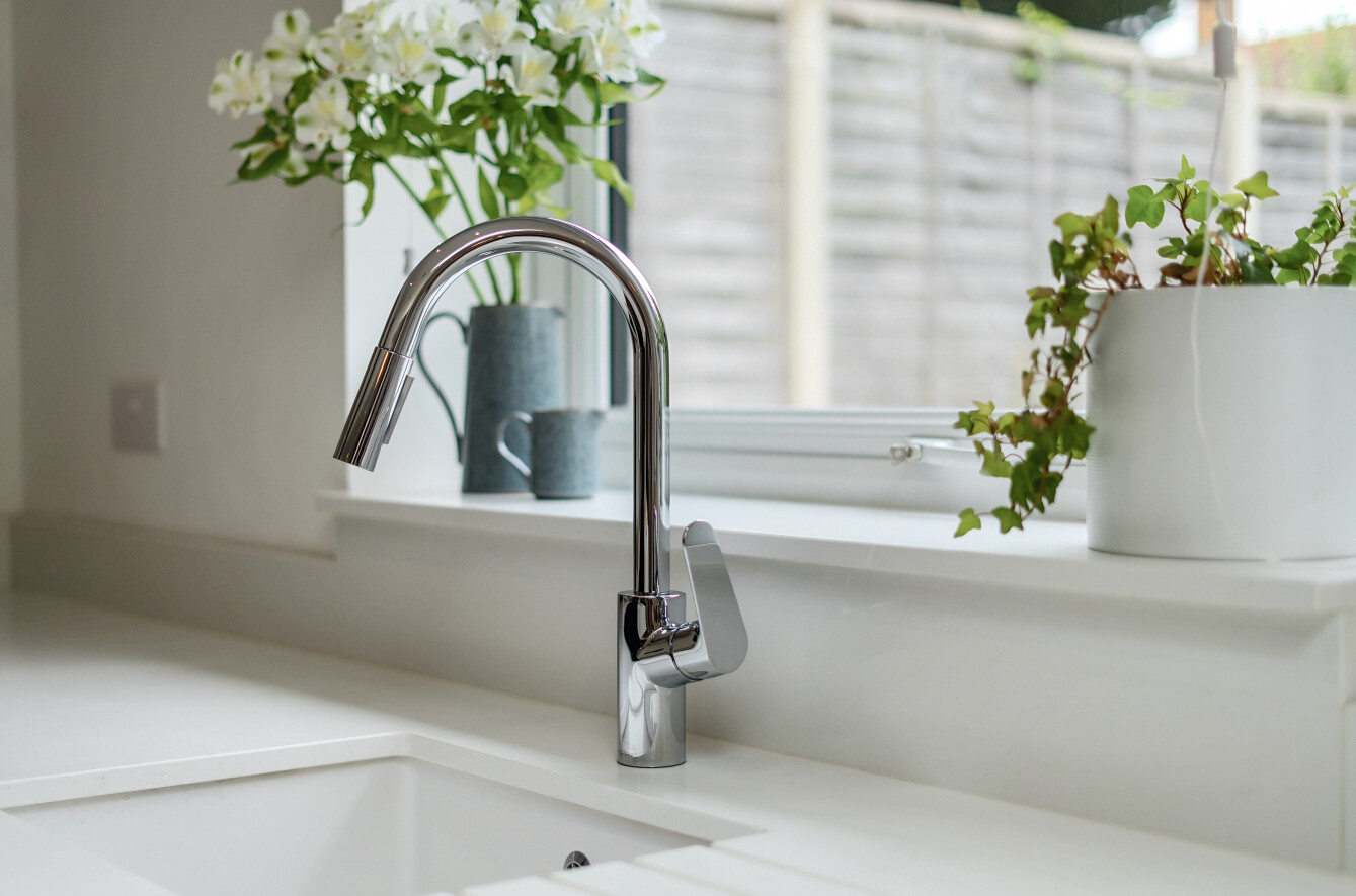 The kitchen itself is a bespoke Impuls German design, beautifully appointed with sleek cabinetry, stone worktops, and a full range of integrated appliances. A dedicated utility room keeps everyday essentials out of sight, while pale wood-effect flooring adds a touch of warmth and style.