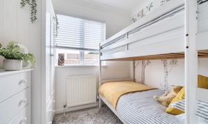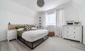 Upstairs, the principal bedroom offers a peaceful and spacious environment, complete with fitted wardrobes and a stylish en suite shower room. Two further bedrooms are both finished to a high standard and share a spacious family bathroom with a shower over bath.