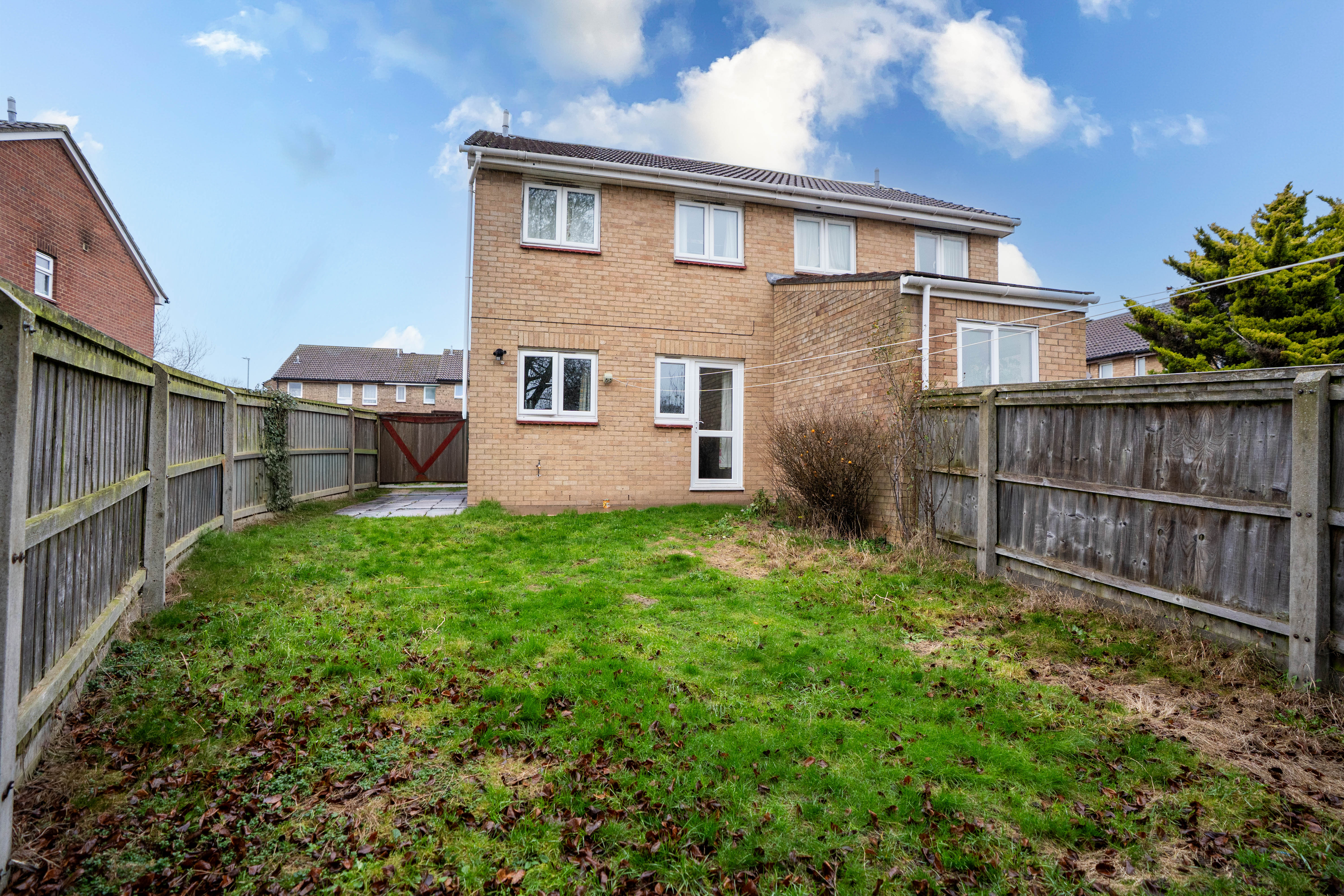 Externally, the front of the property features a lawned area with a pathway leading to the front door. To the side, there is a separate driveway with gated access to the rear garden. The rear garden is fully enclosed by fencing and is mainly laid to lawn, with a patio area ideal for outdoor seating.