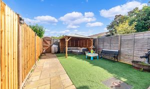 Outside, to the rear, the garden is a nice size, fully enclosed by fencing and offering a lovely spot to relax after a busy day and enjoy the countryside views. It is laid to both artificial lawn, paved patio and an undercover pergola, providing ample room for garden furniture and entertaining guests. A gate leads to the double garage and further parking to the rear.