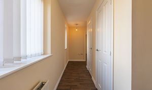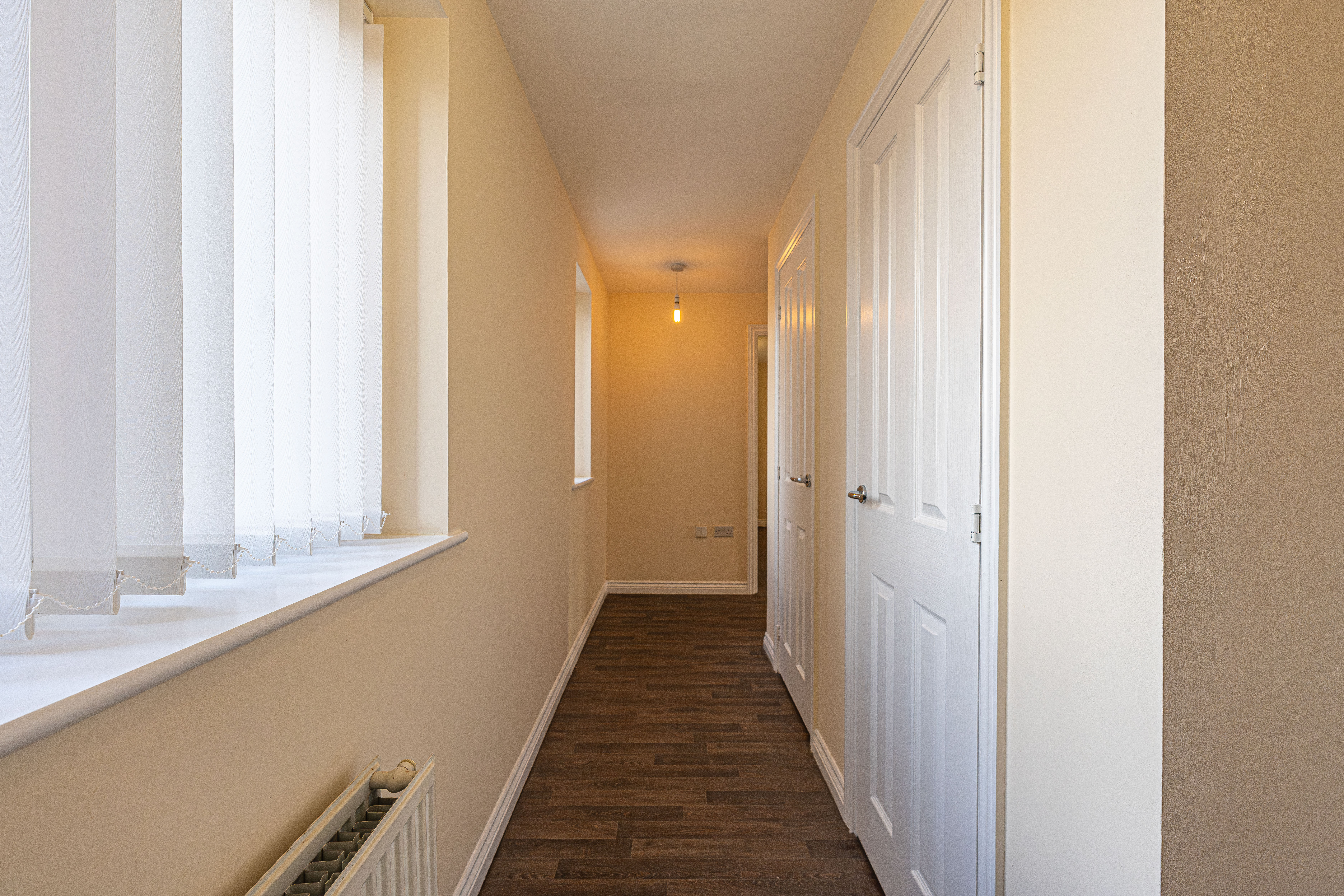 The property features two bedrooms, which are both double in size, sharing the family bathroom which is found from the hallway and equipped with shower over bath suite. Also accessible from the hallway are two storage cupboards, one of which houses the water tank and can be used as an airing cupboard.