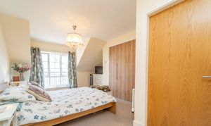 This charming room is finished with soft magnolia walls and cosy carpeted flooring. It offers two integrated wardrobes, providing generous hanging and shelving space. Natural light floods in through dual aspect windows, complemented by a ceiling light, while a radiator and power points add comfort and convenience.