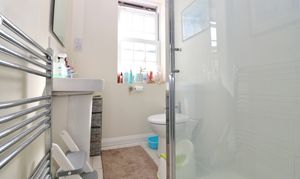 The second bedroom also has a built-in wardrobe and overlooks the rear, whilst the modern shower room has a window to the side, wash hand basin, WC and a shower cubicle.