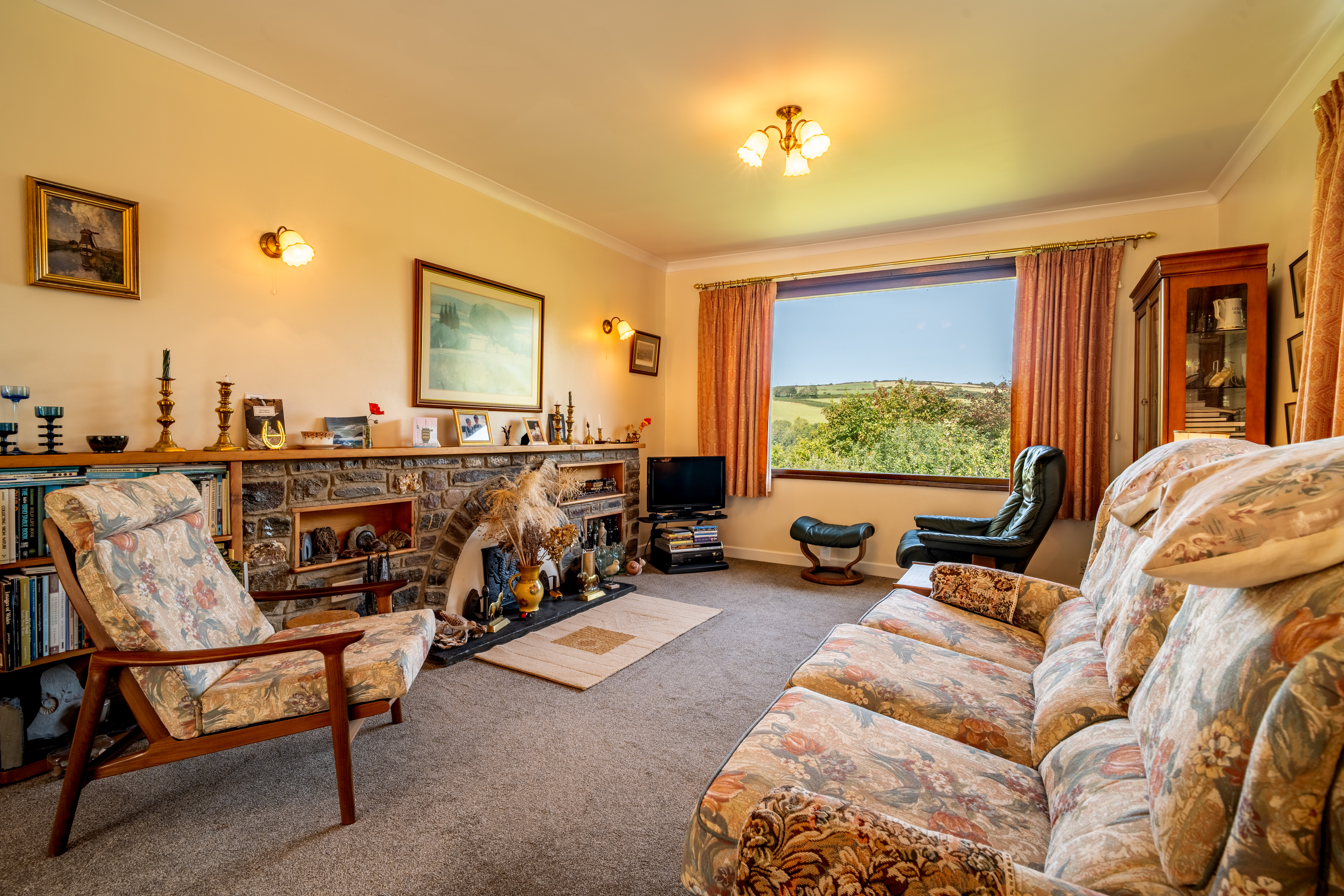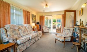 An inviting and attractive dual-aspect sitting room with wonderful countryside views to the rear and side. This well-proportioned room includes a large picture window overlooking the garden, a feature fireplace providing a natural focal point, two radiators, and a coved ceiling. Light floods in from both aspects, creating a comfortable and uplifting space. The sitting room leads directly into the conservatory.
