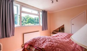 Also located on the first floor and enjoying a rear aspect, Bedroom Two offers beautiful views across the surrounding countryside. The room is well-proportioned with sloped ceilings adding architectural interest, and includes a radiator, built-in wardrobe cupboards, and a further eaves storage cupboard. Ideal as a guest room or second suite, it provides both charm and practicality in equal measure.