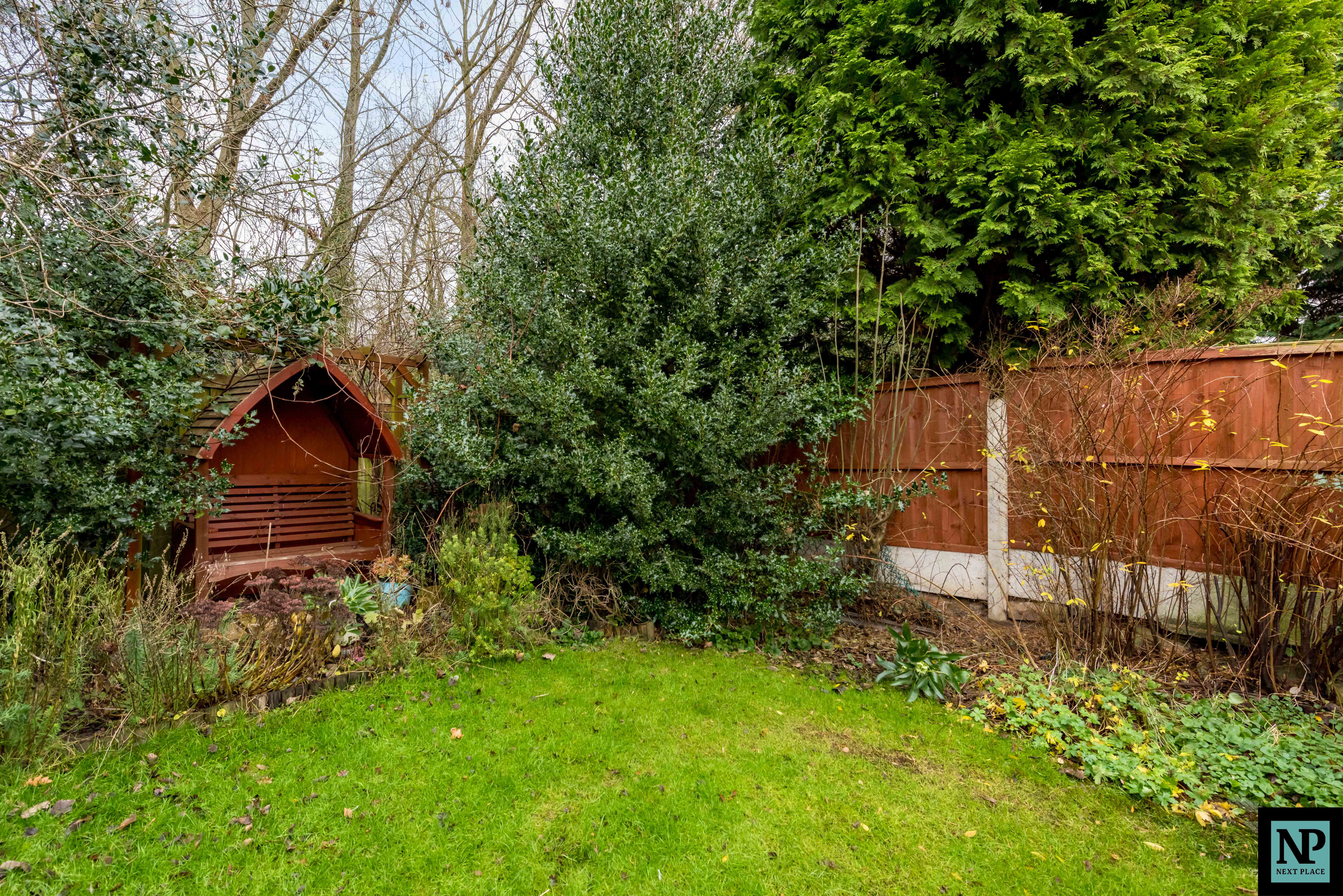 Step outside into the expansive rear garden, a haven of privacy and natural beauty that extends seamlessly into the Kettle Brook Nature Reserve. Here, mornings can be spent with a cup of coffee, surrounded by the soothing sounds of nature, and evenings can unfold in the company of friends and family under the open sky.