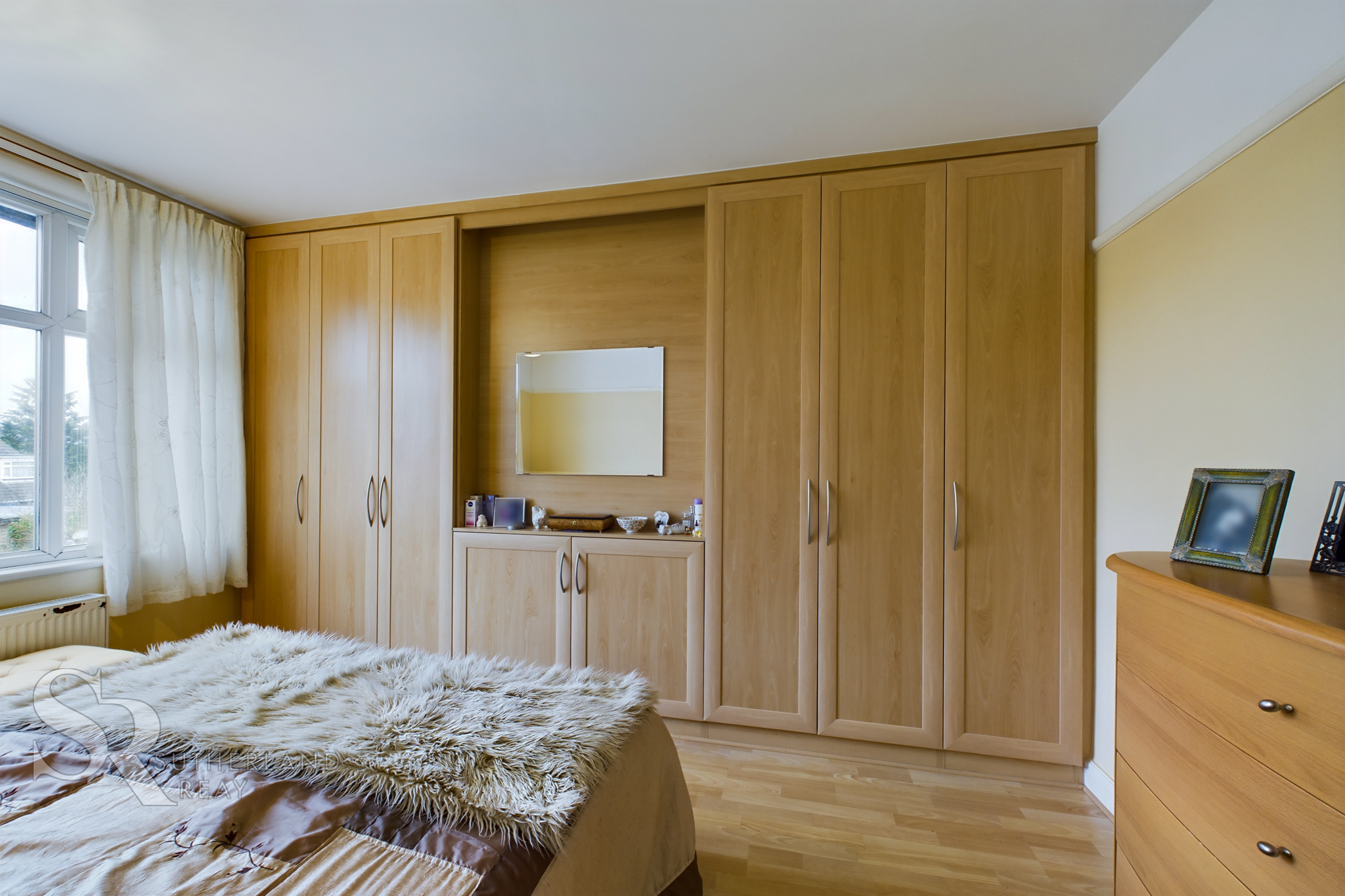 Double glazed uPVC window to the rear elevation, floor to ceiling fitted beech wardrobes with built in vanity area and mirror, radiator, pine effect laminate flooring, picture rail.