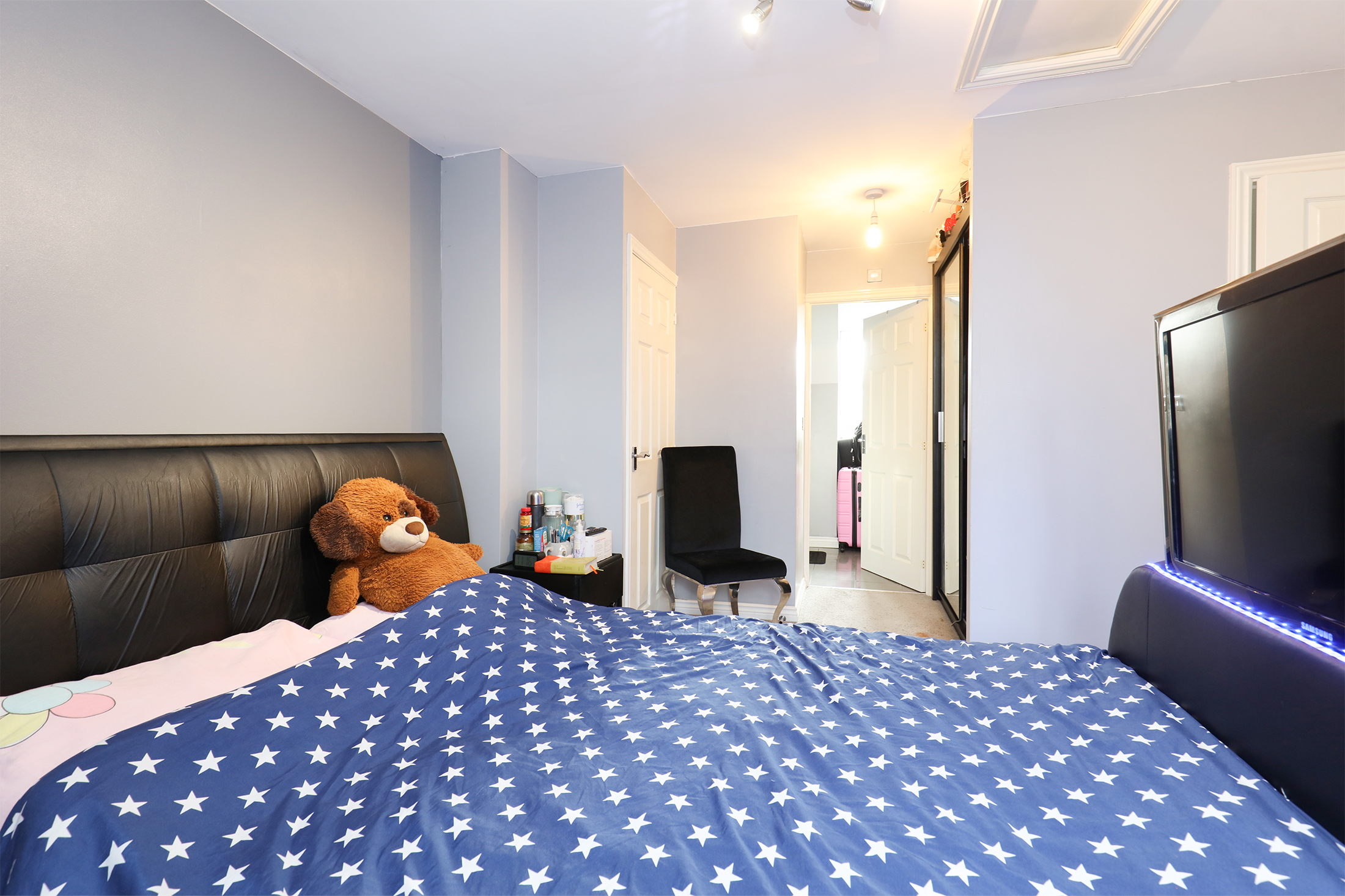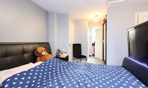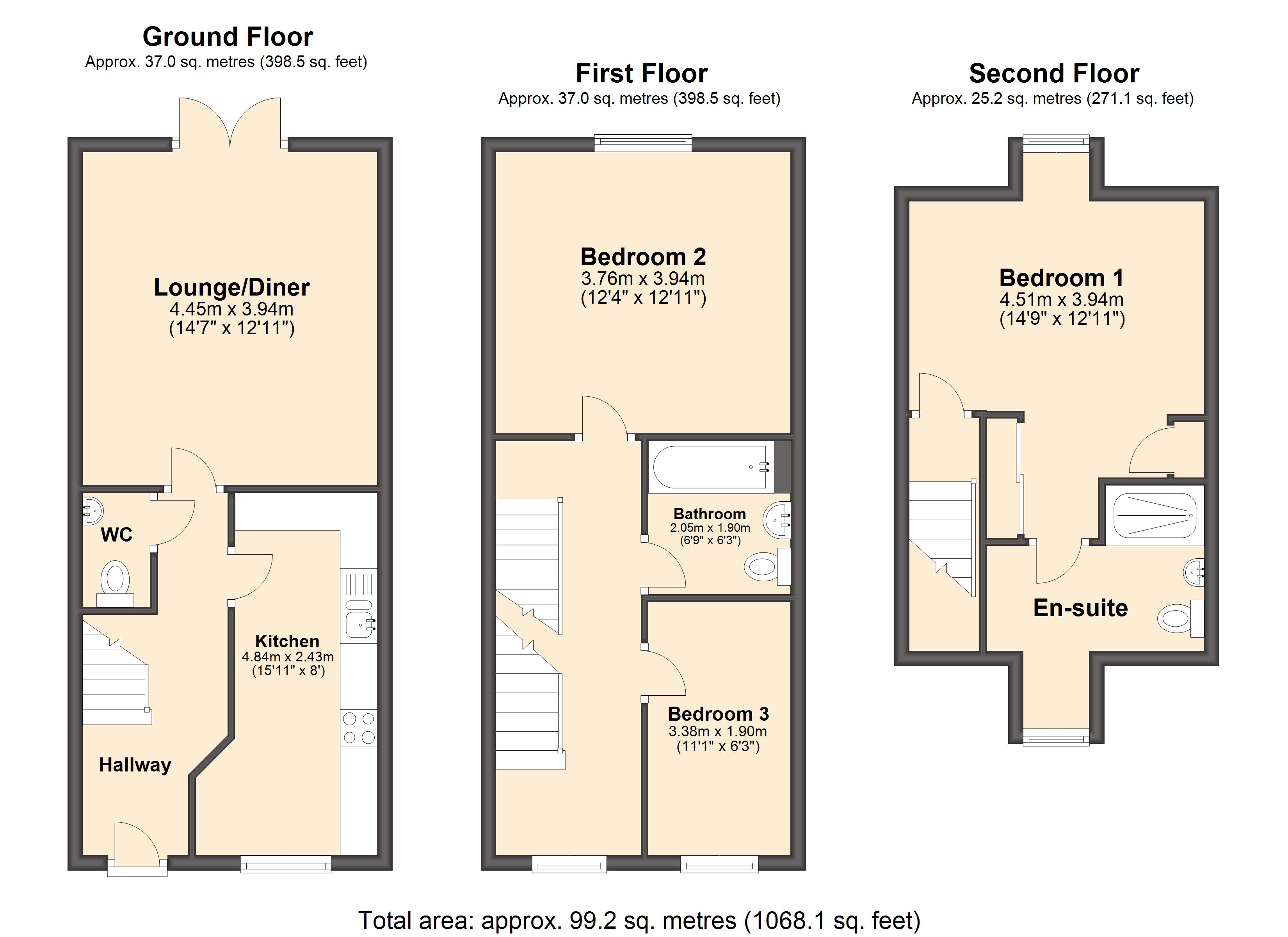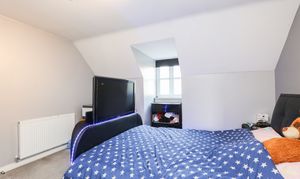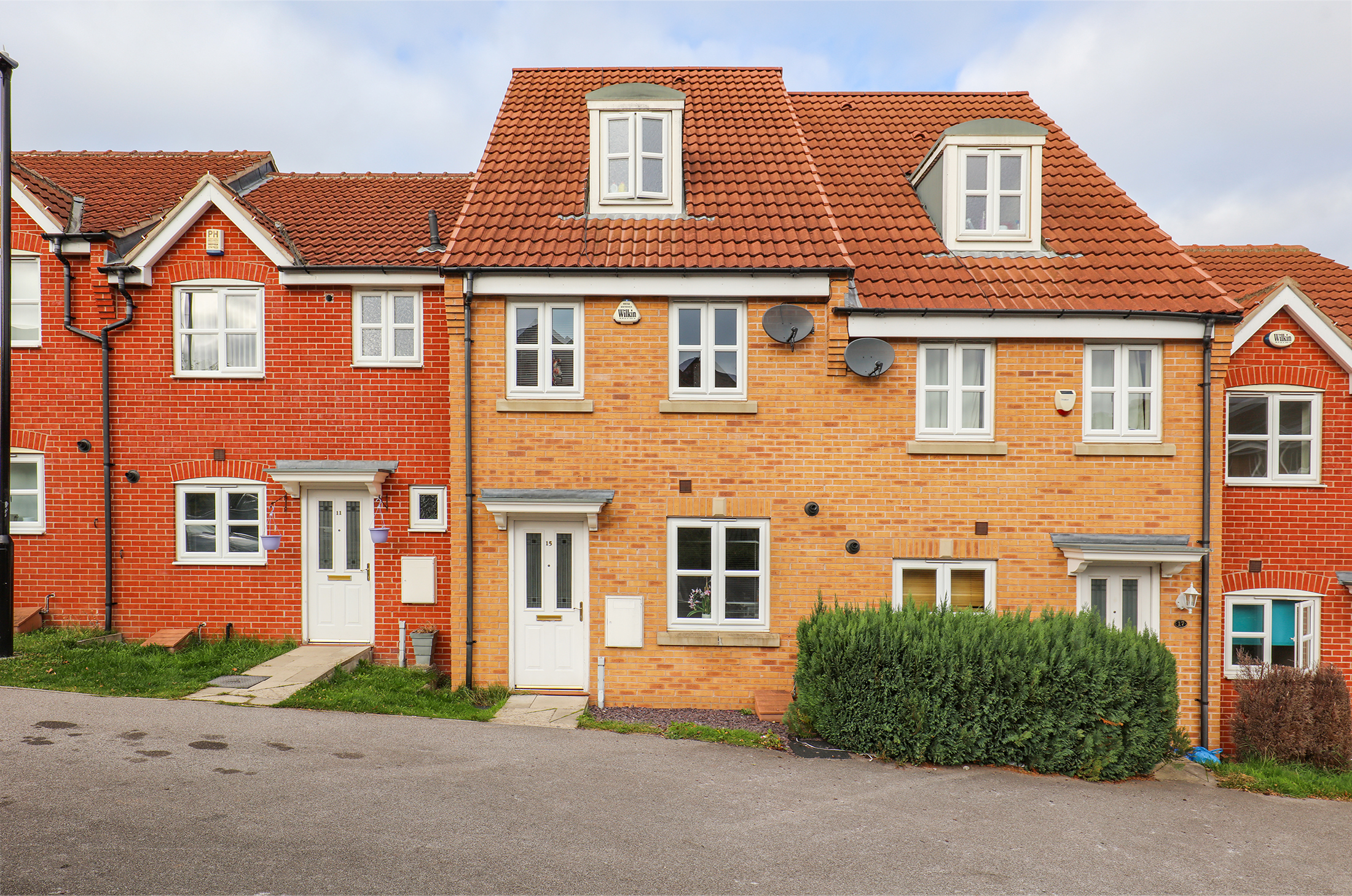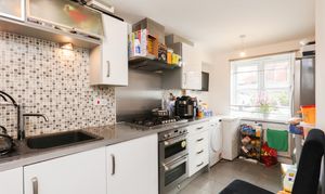 Ample living & dining space on the ground floor includes a generous lounge with French doors to the garden, alongside a modern fitted kitchen with a range of integrated appliances. The bedrooms are all good sized doubles with space for fitted or stand-alone furniture. The principal bedroom also features a three-piece en suite. There's an enclosed landscaped garden to the rear with lawn & patio, providing a safe space for children to play.