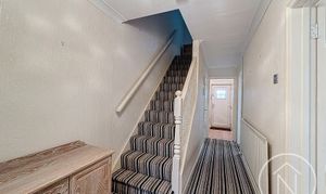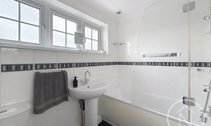 This well-presented three-bedroom, one-bathroom mid-terraced house offers spacious and modern living throughout. The light-filled reception room features a modern fireplace and large window with vertical blinds, complemented by neutral decor that provides a versatile backdrop. The contemporary kitchen boasts sleek white cabinetry and ample counter space, making it ideal for culinary enthusiasts. Upstairs, the bedrooms benefit from generous built-in storage and large windows that bathe the rooms in natural light. The bathroom includes a bath-tub with integrated shower and large frosted windows for privacy and brightness.