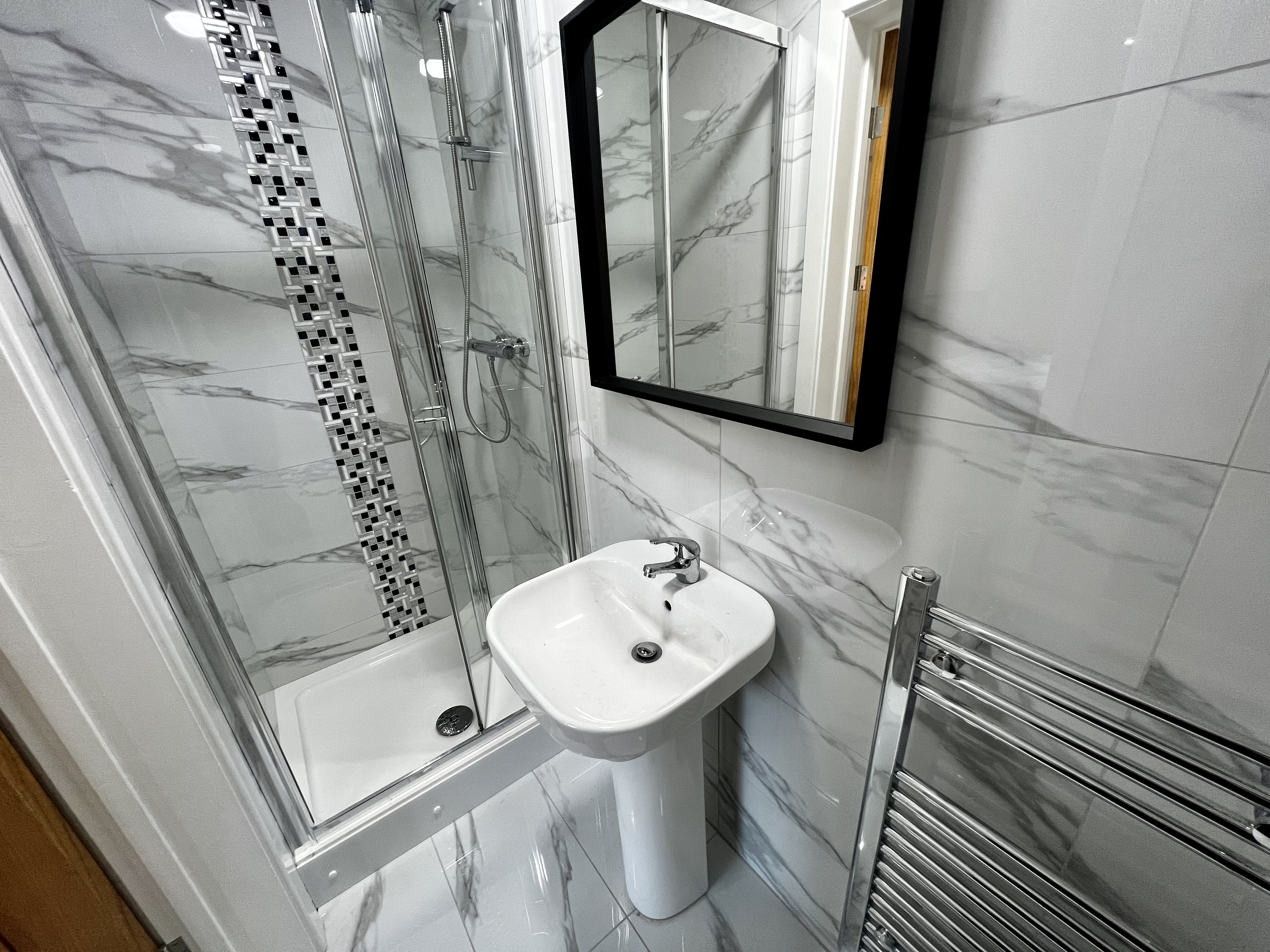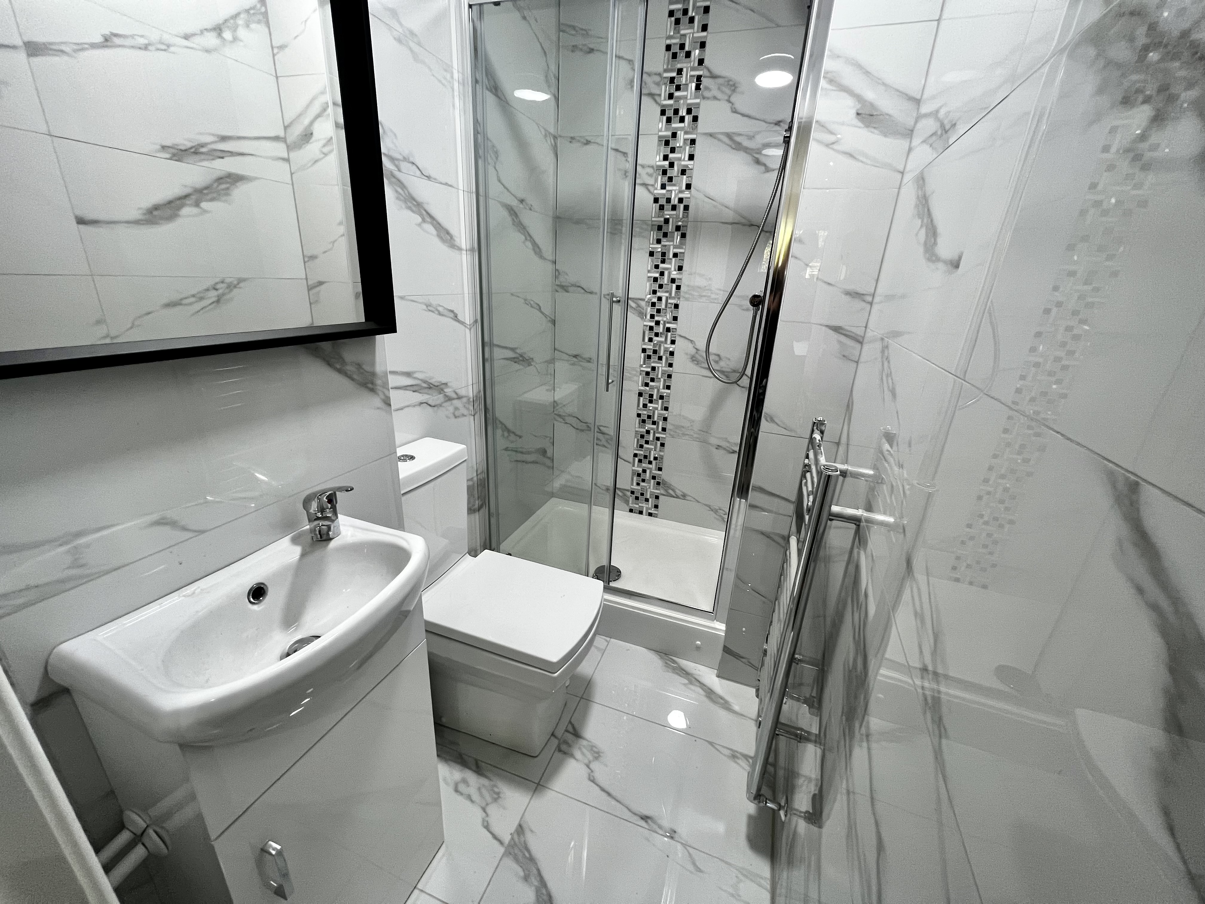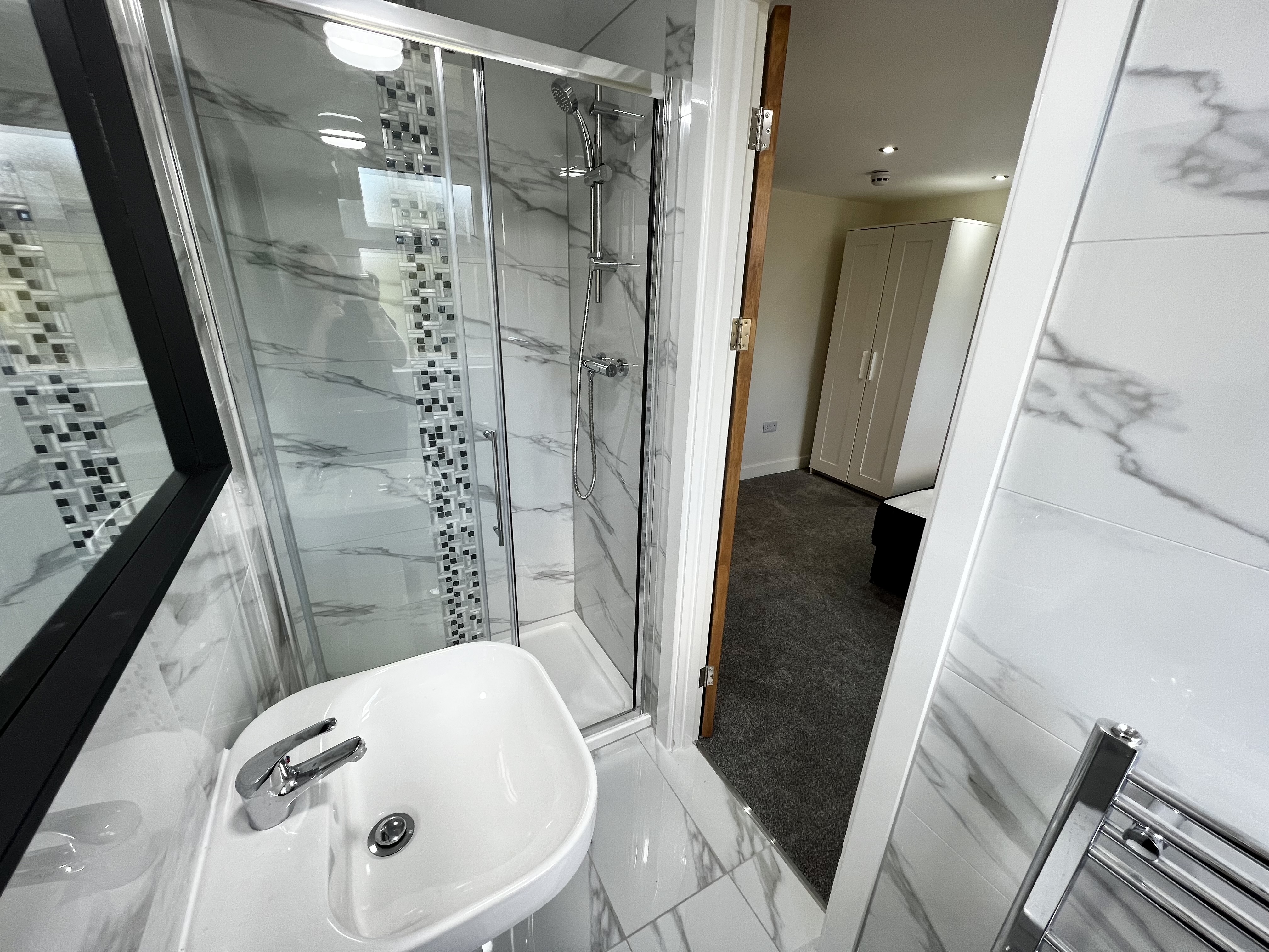 The property has been extended and fully refurbished throughout to a high specification with a modern feel. In brief, the property boasts 5 double bedrooms each with their own ensuite, the rooms are fully furnished each with a bed, mattress, side table, wardrobe, desk and chair. The ensuites all have a shower, sink, toilet, large mirror and heated towel rail. On the ground floor there is a brand new kitchen which will come with white goods and a seating area.