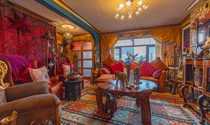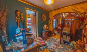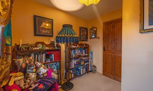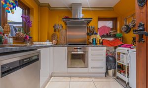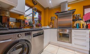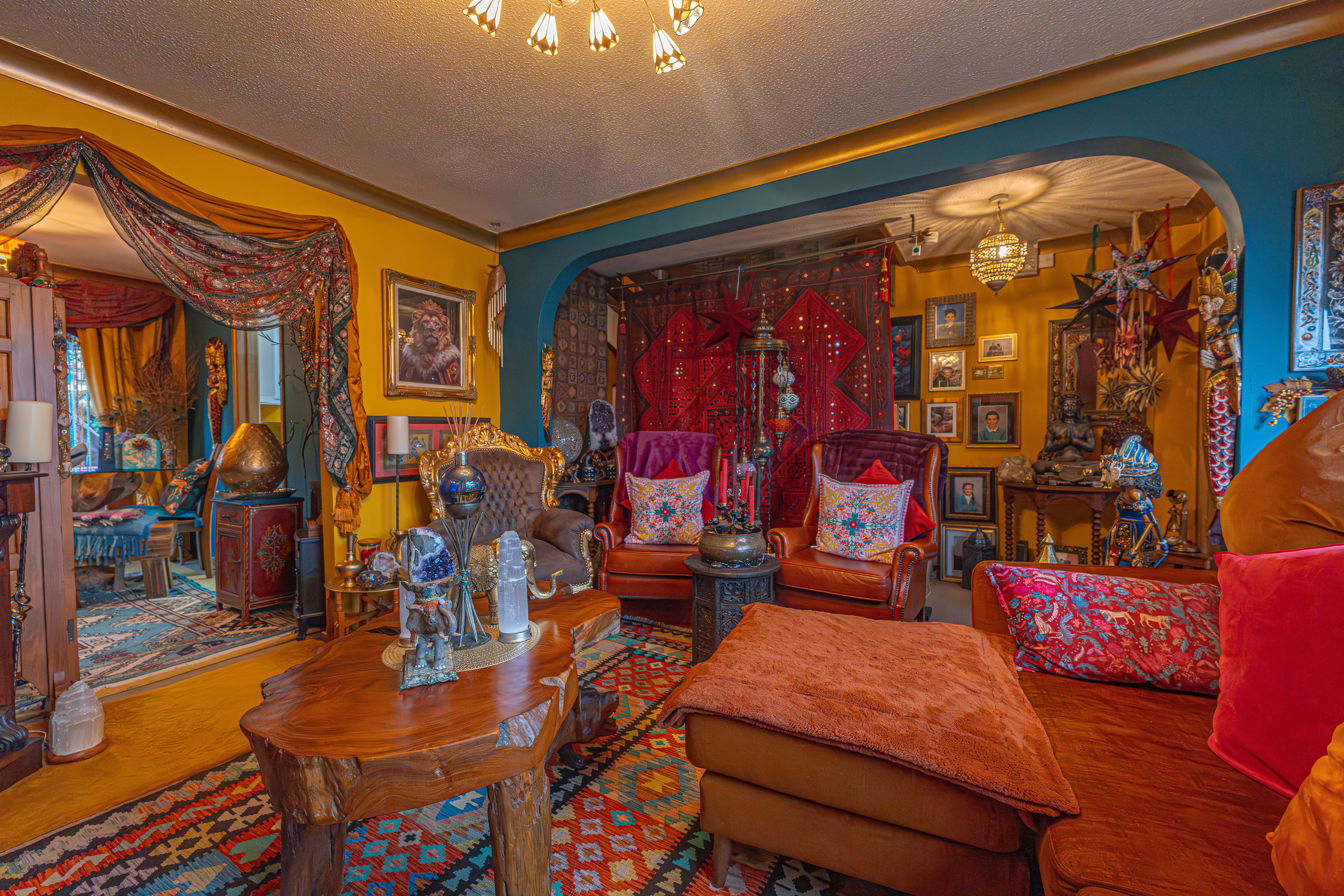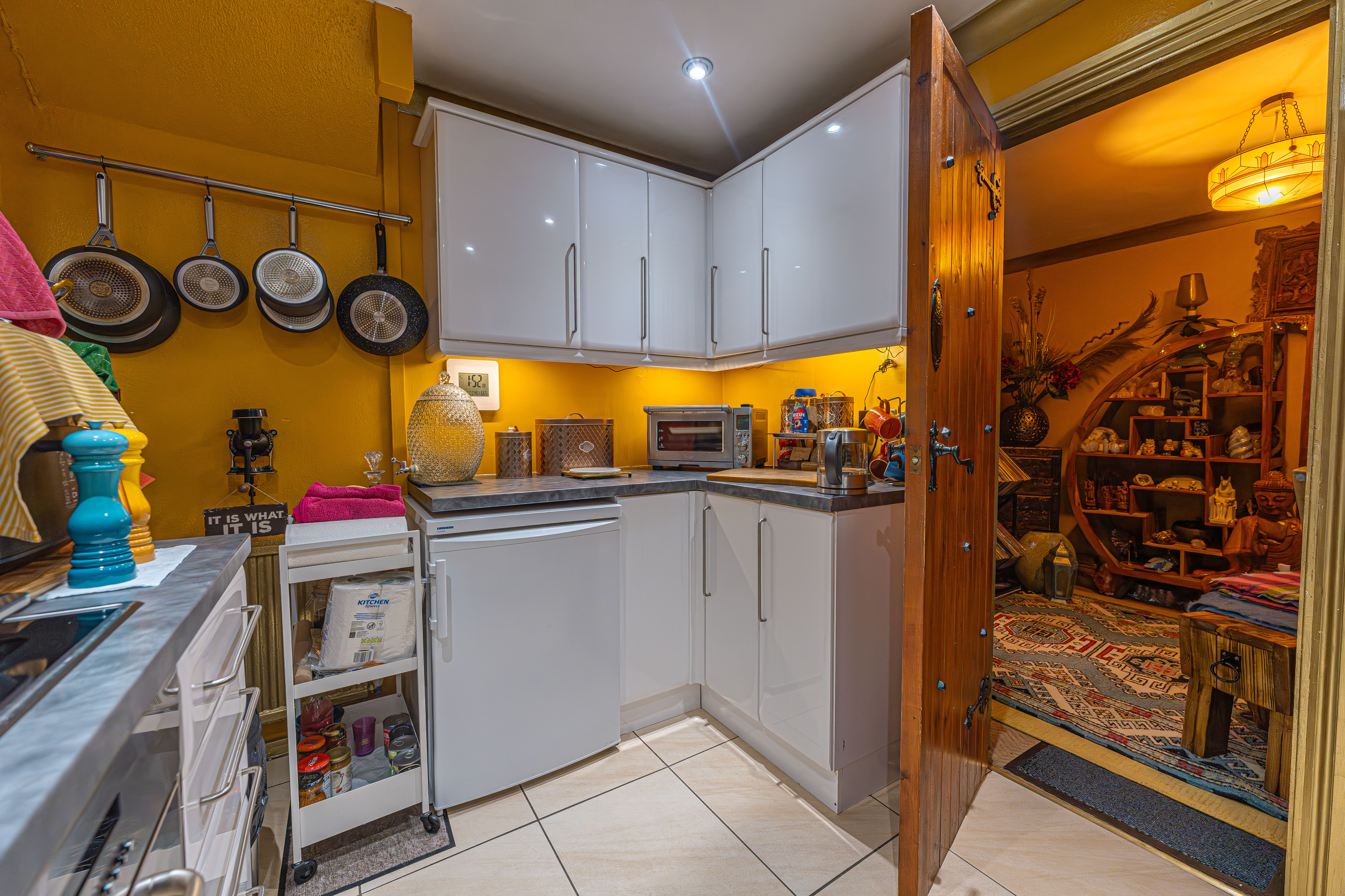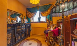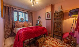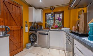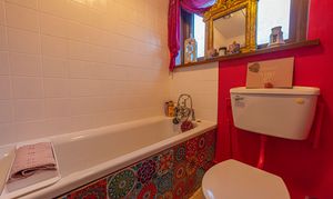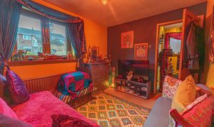 This charming family home offers an abundance of charm and character with vibrant décor, ornate woodwork, and stunning features throughout. We are welcomed into the home through the entry porch, which follows through to the spacious living room, which is flooded by natural light to offer a warm and inviting atmosphere, perfect for relaxing and entertaining. The living room also features an open walkway connecting to the dining room at the rear of the house, which is also well lit with French doors opening out to the garden. Neighbouring the diner is the kitchen, with practical storage solutions and plenty of room for appliances to join the integrated hob and oven.