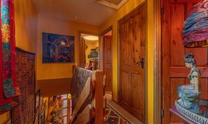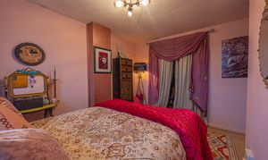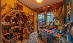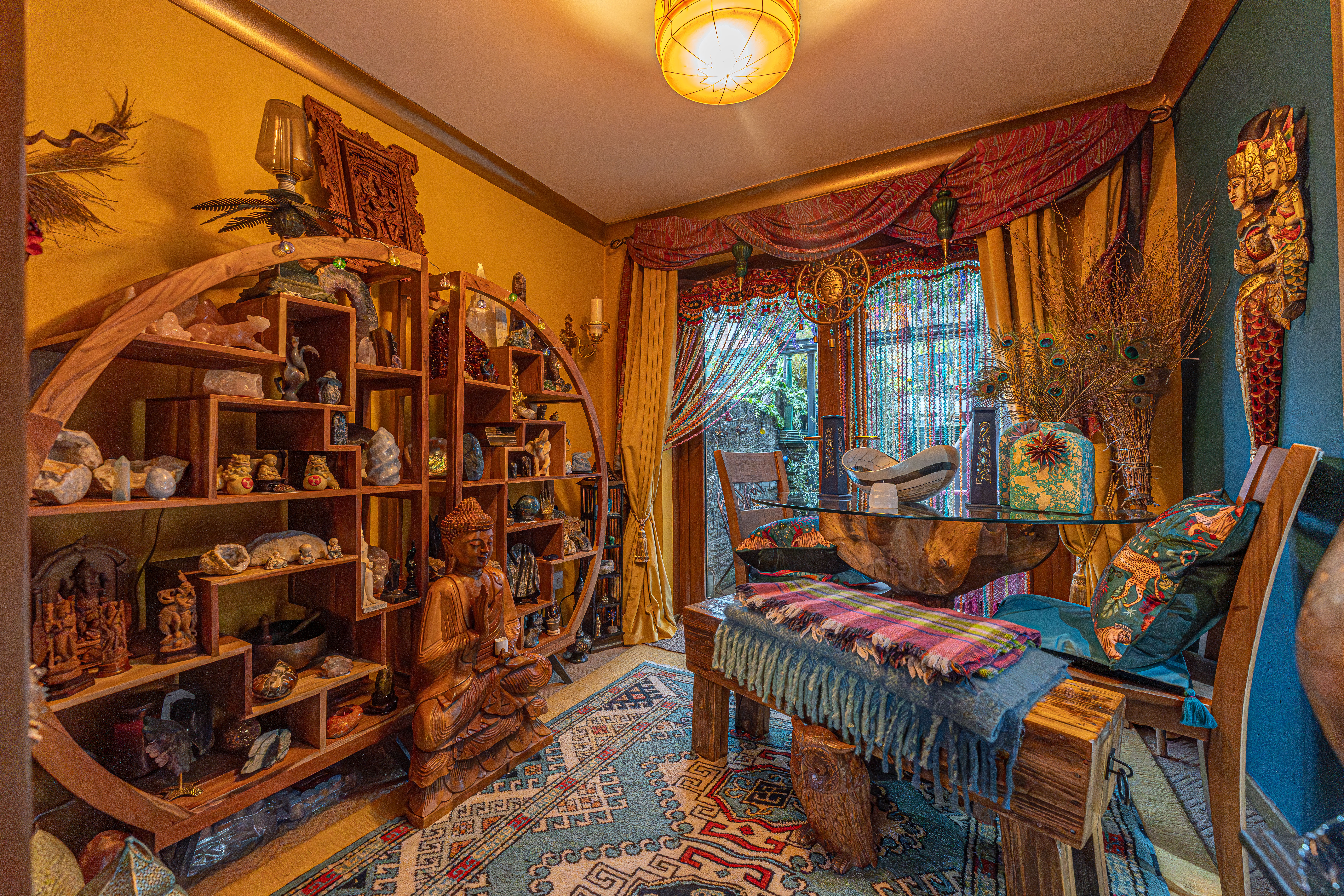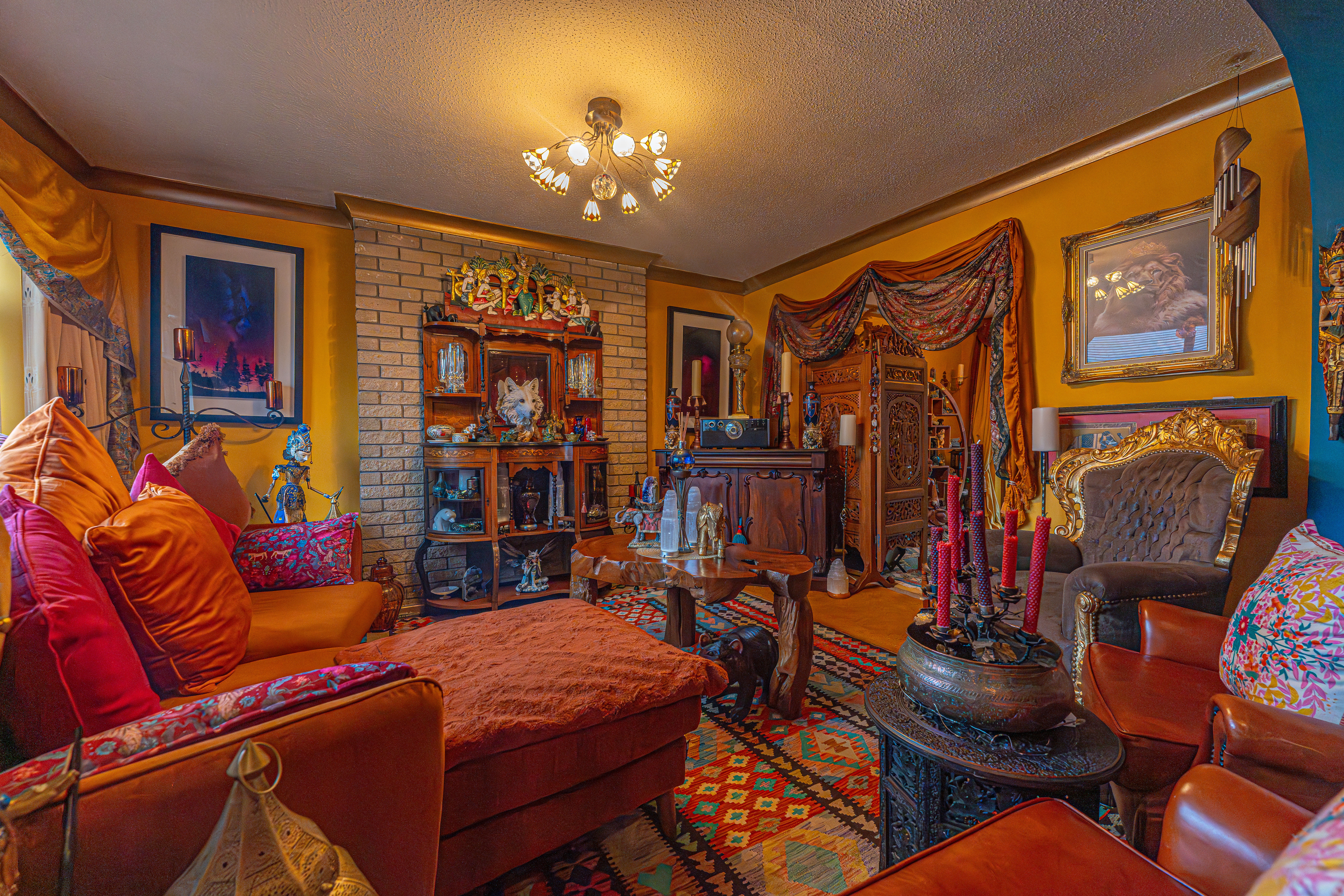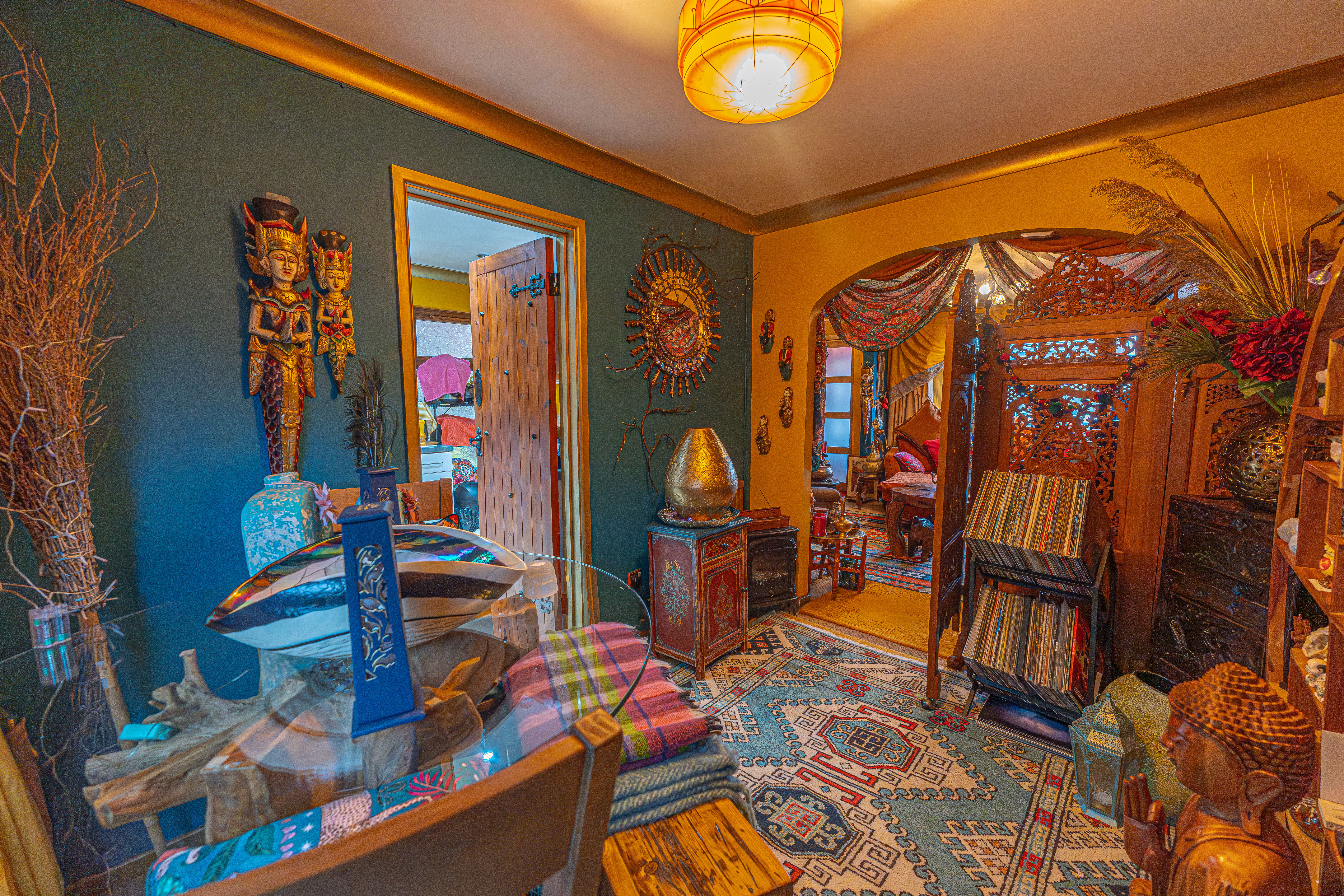 This charming family home offers an abundance of charm and character with vibrant décor, ornate woodwork, and stunning features throughout. We are welcomed into the home through the entry porch, which follows through to the spacious living room, which is flooded by natural light to offer a warm and inviting atmosphere, perfect for relaxing and entertaining. The living room also features an open walkway connecting to the dining room at the rear of the house, which is also well lit with French doors opening out to the garden. Neighbouring the diner is the kitchen, with practical storage solutions and plenty of room for appliances to join the integrated hob and oven.