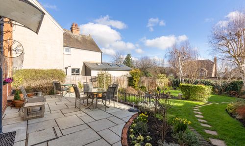 This home has an attached double garage, with power and light connected, an EV charger and doors through to the garden and utility room. There is driveway parking for 2 cars to the front of the garages. The rear garden is West facing, so enjoys sunshine throughout the afternoon and evening, with a large patio leading on to a level lawn with well-stocked flower borders. At the far end, is an attractive summerhouse which enjoys the dappled shade of the trees behind in the summer months.