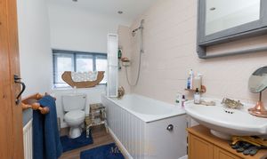 Upstairs, spacious hall gives access to all 4 double bedrooms and family bathroom. Bedroom 1 is toward the rear aspect comfortably accommodating a king size bed and furniture, with a window overlooking the garden. Bedrooms 2 and 3 are equally generously proportioned housing all bedroom furniture. Bedroom 4 is also a good size, with space for a double bed. The bathroom is partially tiled housing all expected sanitaryware.