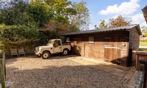 Upon approach to the property, a 5 bar gate gives access to the sizable driveway with parking for many vehicles. You also see the double garage (felt replaced) and gate to the stables (re roofed).