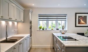 To the rear of the home is the stunning open-plan kitchen and dining area — truly the heart of the home. This superb space is perfect for both everyday living and hosting guests, with ample room for a large dining table and seamless access to the rear garden through Bi-Fold doors. The kitchen itself is finished to an exceptional standard, featuring a full range of integrated appliances, contemporary cabinetry, and luxurious quartz worktops. A separate utility room offers further practicality, along with a downstairs cloakroom for added convenience.