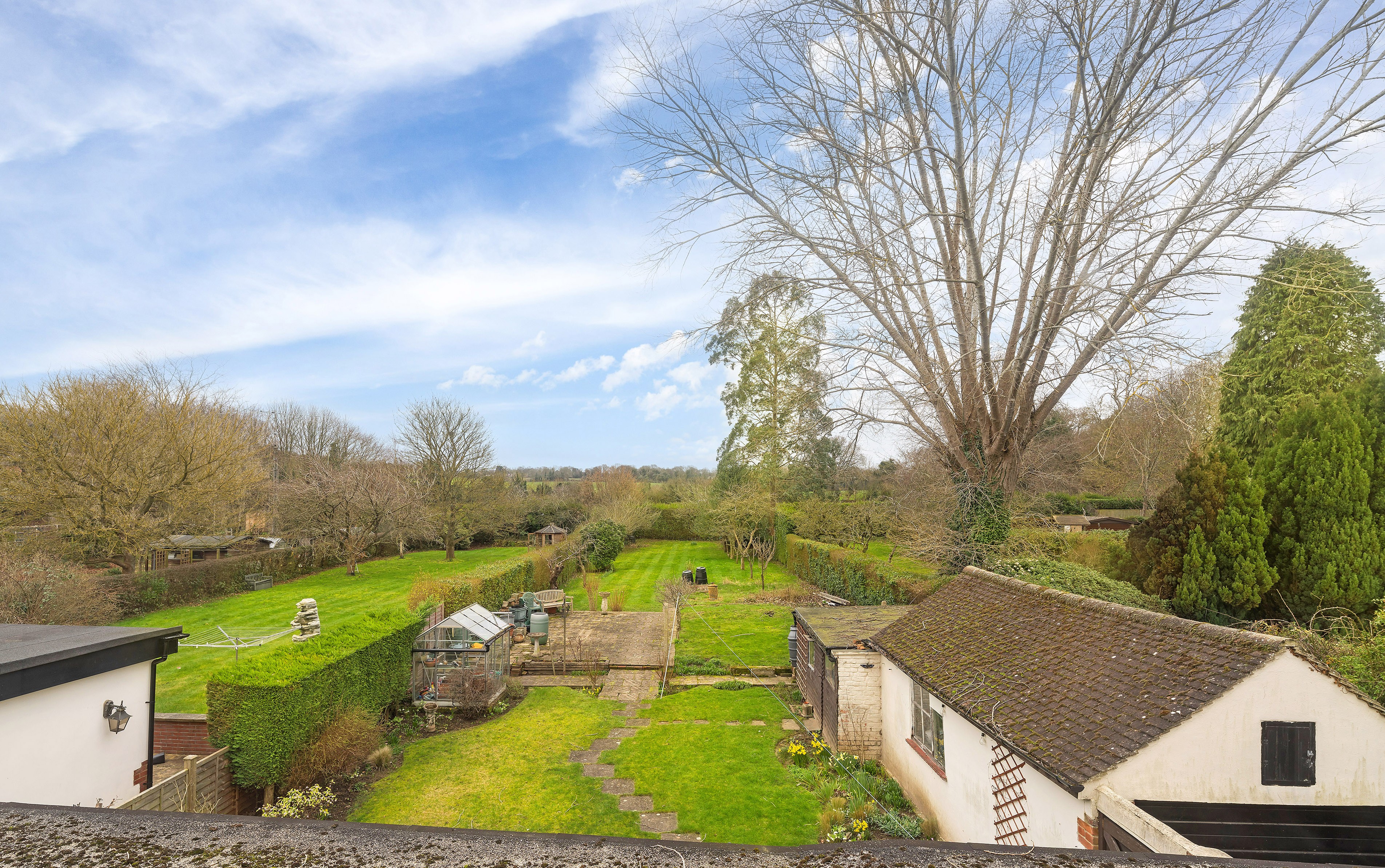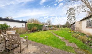 The rear garden is south facing, mainly laid to lawn and bordered by hedgerow and mature trees and shrubs, there is a patio, a further raised seating area for entertaining, greenhouse and timber workshop with power and light. The property also benefits from a detached garage and driveway for two cars, gated side access and rear access directly to Goddington Park.