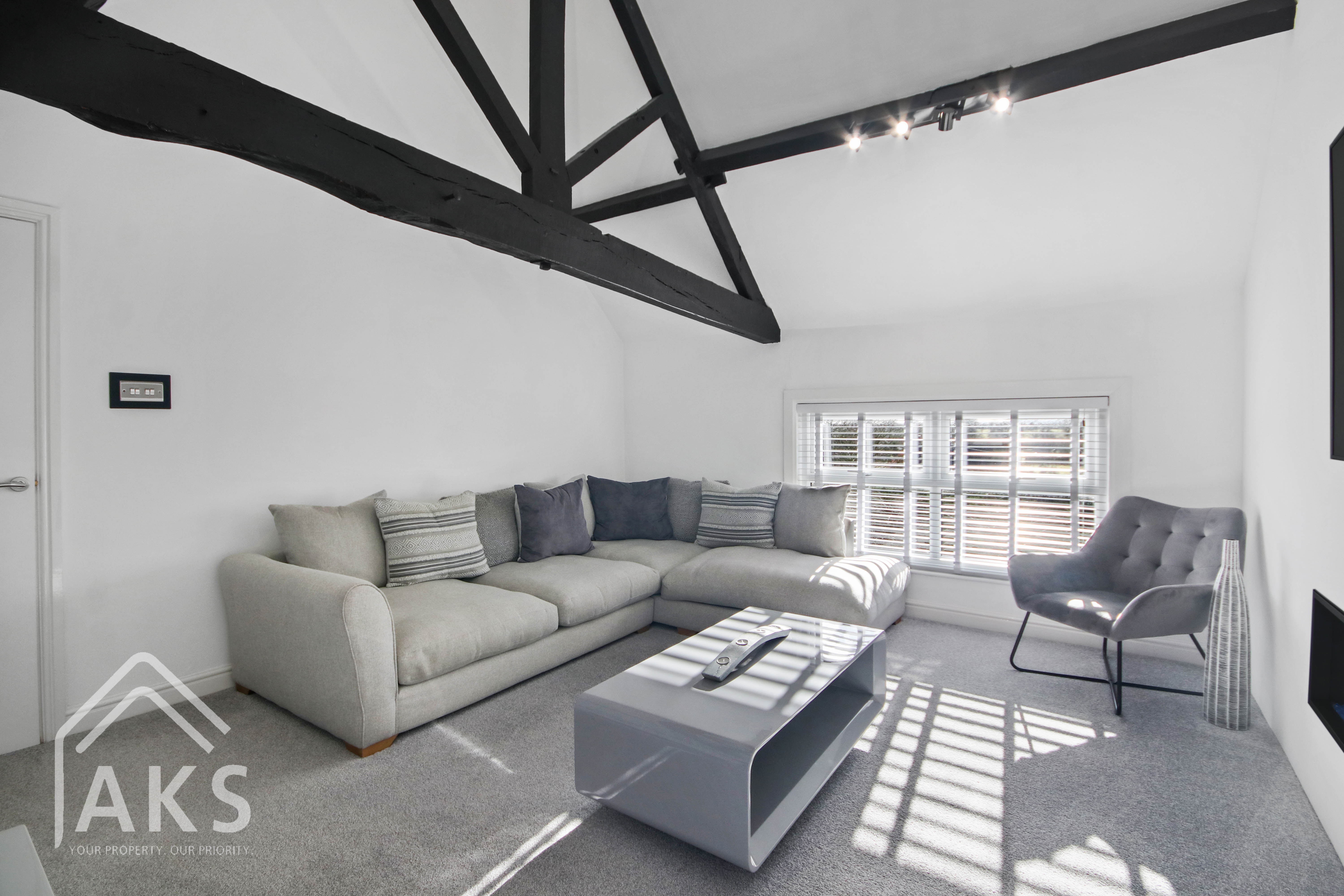 “This is just a beautiful unique home on the outside and the interior. If you are looking for a property that is not only completely refurbished but holds masses of love and charm, then this one may be just for you! Location wise, Church Broughton is a scenic village with an award winning pub but is also close to amenities in close by villages. The property itself, is the penthouse which has its very own private, terrace garden with beautiful views of Church Broughton and the church. Entering into the hallway, there is plenty of space for coats and shoes with further storage under the staircase. Heading up the stairs you can instantly feel the welcoming charm that this home has. The kitchen is a fantastic room, having integrated appliances including a full size fridge, full size freezer, dishwasher, washing machine, oven, microwave oven and coffee machine! The breakfast bar is huge and can seat at least 6 people but also has built in cupboards. The tap is an instant boiling water tap meaning you dont need a kettle cluttering up your work tops! The lounge has a real cosy feel and is flooded with natural light, having a window and patio doors out onto the terrace garden, the current owners have put in a beautiful modern inset electric fire. Both bedrooms are great sized double, the master having the real wow factor, with an incredible large free standing bath and patio doors onto the terrace garden. The shower room has also been fully modernised to the same high standard, large shower with rainfall shower head, wash basin with storage and WC. Outside, wrapping around the building there is communal gardens. This penthouse also benefits from having 2 allocated parking spaces. This property really is something special, has beams throughout giving it character and needs to be viewed to appreciate how beautiful it is!”