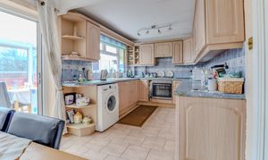 The internal accommodation comprises in brief; a useful porch with built in cloaks and shoe storage, a door from the porch leads into a very spacious lounge with a feature fireplace and a picture window to the front. Doors from the lounge lead into the dining kitchen which is superbly fitted with a range of Shaker style wall and base units, integrated oven and hob and space for a washing machine. Patio doors from the dining kitchen lead through to the sizeable conservatory which provides additional accommodation and utility space.