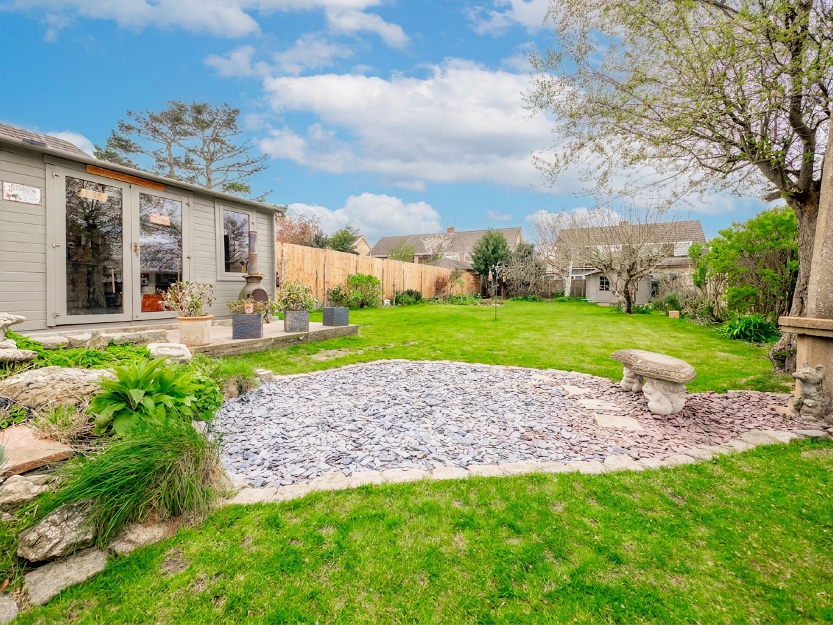 Throughout the bungalow, you’ll notice the care and attention that has gone into the recent renovations, from the full rewiring and replastering to the new loft insulation and updated render, ensuring a move-in ready experience. The kitchen flows seamlessly into the living areas, making it easy to keep conversations going while you cook, and there’s plenty of storage thanks to clever built-in solutions. For those who need extra space, the outbuilding is equipped with power and fitted cupboards, ideal for a workshop, studio, or simply keeping your home organised.