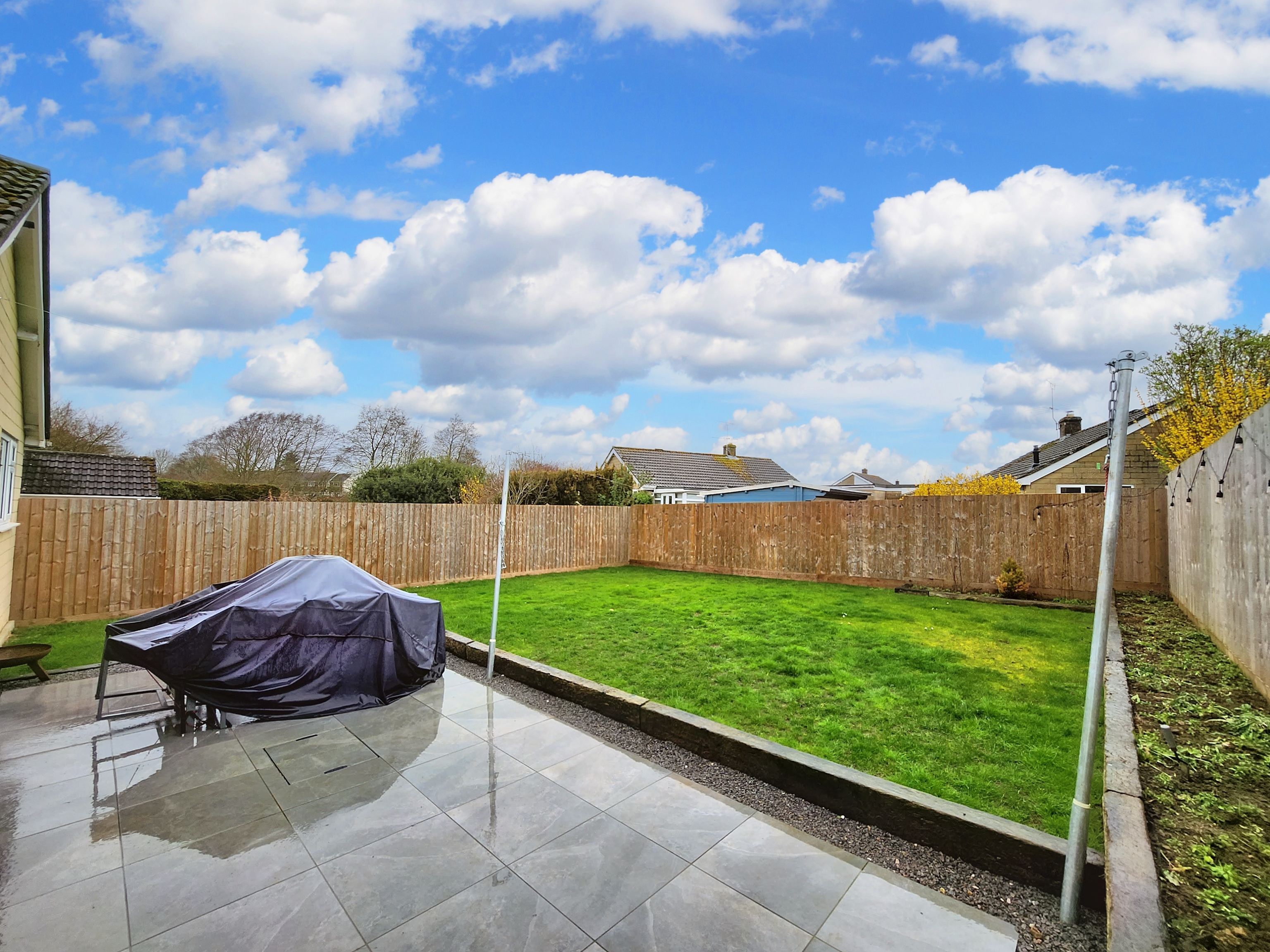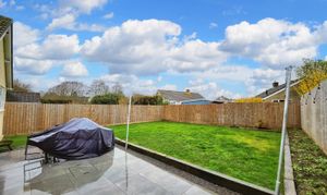 The rear garden is laid to lawn and patio, enclosed by panel fence, with access to the rear of the garage