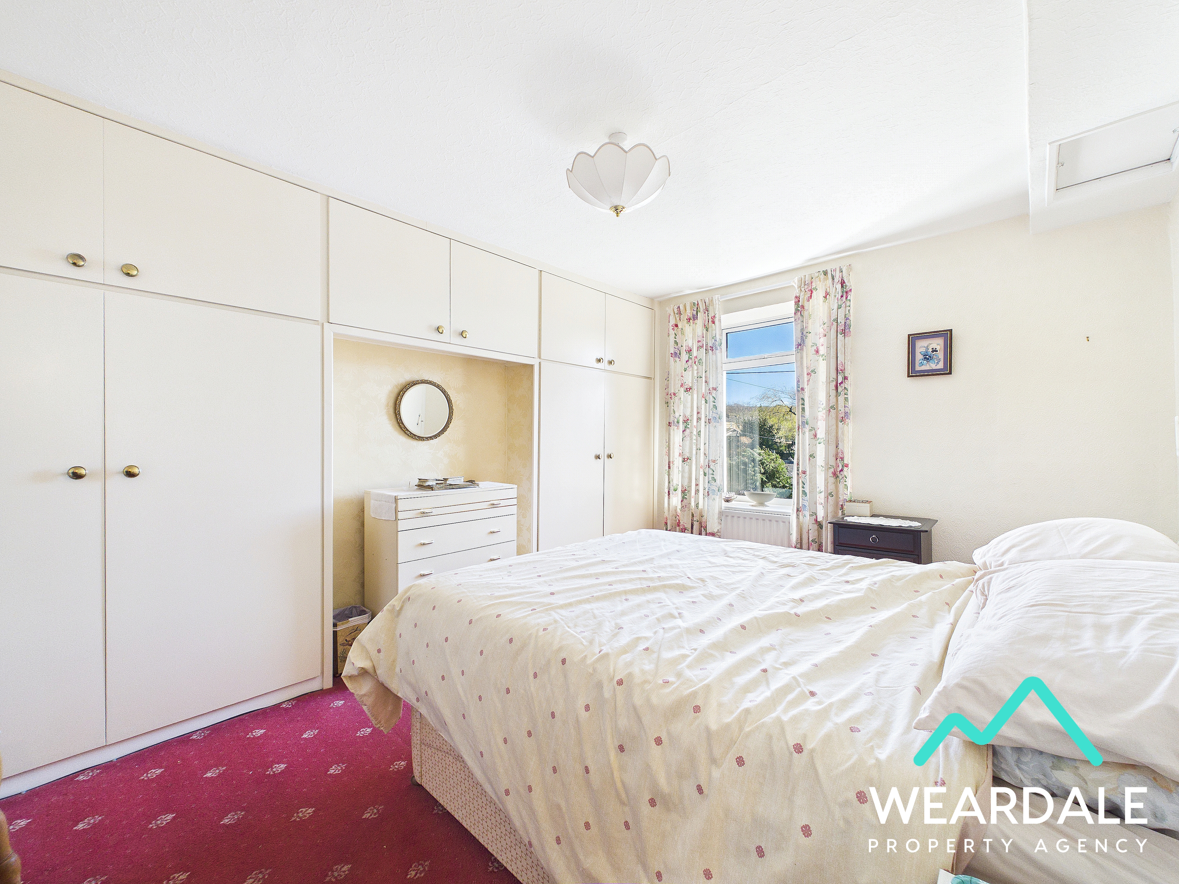 - Positioned to the front of the property and accessed from the landing via one step up - Well-proportioned double room - Double-glazed uPVC window with deep uPVC sill to the Eastern aspect, looking over the front of the property - Carpeted - Neutrally decorated - Integrated wardrobes covering the wall to the Northern side of the room - Built-in storage cupboard - Central ceiling light fitting - Radiator - Access hatch to the property’s roof space - Ample space for free-standing storage furniture