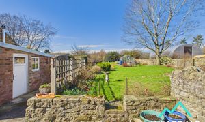 The rear garden is accessed both internally from the rear porch and externally via the access lane running along the Southern side of the property. This large West-facing garden, provides magnificent views of the surrounding hillsides. From the rear porch, a concrete-paved area leads to a wrought iron pedestrian gate, which opens onto the expansive lawned garden. This beautifully maintained outdoor space is enclosed by traditional dry stone walls on the Eastern, Northern, and Southern boundaries, creating a sense of privacy and character. The garden is thoughtfully arranged with a variety of flowers, mature shrubs, and established trees, offering year-round colour and interest. Patio areas provide ample space for outdoor furniture, perfect for outdoor dining or simply enjoying the tranquil setting. Additional features include a greenhouse for keen gardeners, a storage shed, and an outside tap for convenience. This delightful garden is a true highlight, providing a peaceful retreat and a wonderful space for both relaxation and entertaining. A single garage (measuring 4.90m by 2.54m) is positioned to the rear, accessed via an up-and-over door as well as a double-glazed uPVC door on the Northern side, offering secure parking or further storage options.