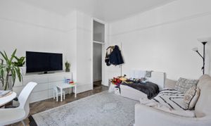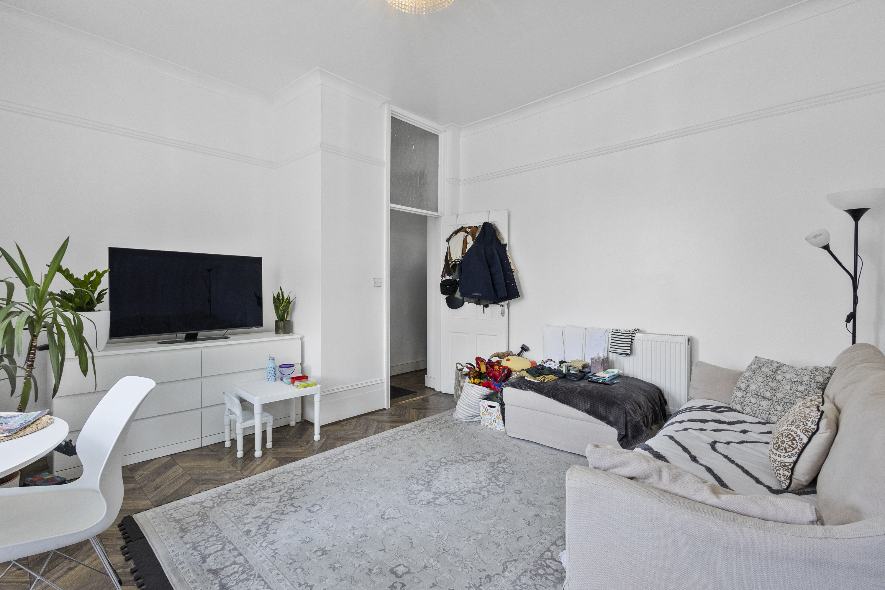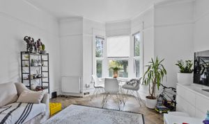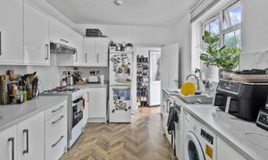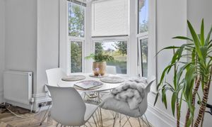 Sunlight spills through the graceful bay-window in the living/dining room, casting a soft glow across high ceilings, period mouldings and those pleasing proportions that elevate everyday living. The separate fitted kitchen offers tasteful modern finishes, clean work surfaces and all the essentials for everyday cooking and entertaining. A peaceful double bedroom sits quietly away from the street, offering restful nights and a calm retreat. The bathroom has been tastefully completed with contemporary fixtures and warm-tone tiling, marrying functionality with style.