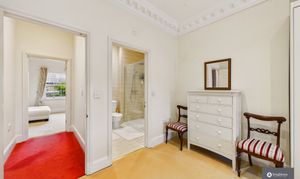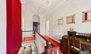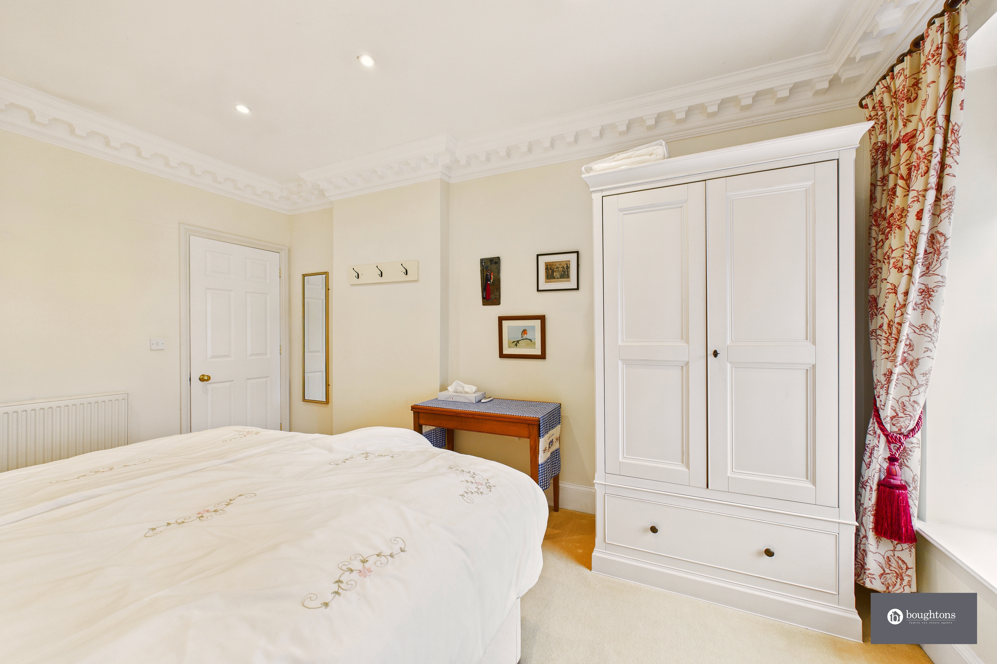 To the first floor, a graceful landing with high corniced ceilings and a sash window to the front aspect leads to five well-proportioned double bedrooms. The main bedroom features a range of fitted wardrobes and a stylish en-suite shower room, while four additional bedrooms and a luxurious family bathroom suite complete the first floor.