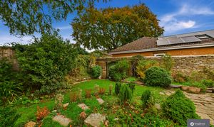 - Private rear garden with patio, lawn, mature planting and stone boundary wall
