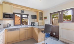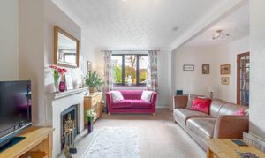 The kitchen is both practical and inviting, featuring a useful breakfast bar and direct access out to the garden, perfect for everyday living. Continuing through, you’ll find a charming study or snug, a lovely room overlooking the garden with double doors that enhance the connection to the outside space. This room also links back through to the living room, creating a seamless flow. The living room itself is filled with natural light and centred around an attractive open fireplace, making it a warm and welcoming space to relax.