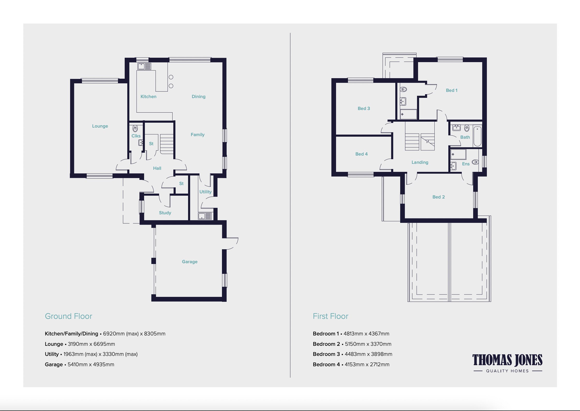 Plot 2 is a well balanced home with accommodation extending to approximately 2,160 sq feet (excluding attached double garage), including an open-plan kitchen/dining/family area, spacious lounge, study, four bedrooms, two with en-suite facilities and a family bathroom. The house will benefit from quality fixtures and fittings, integrated kitchen appliances and will be heated via an efficient air source heat pump with underfloor heating throughout the ground floor.