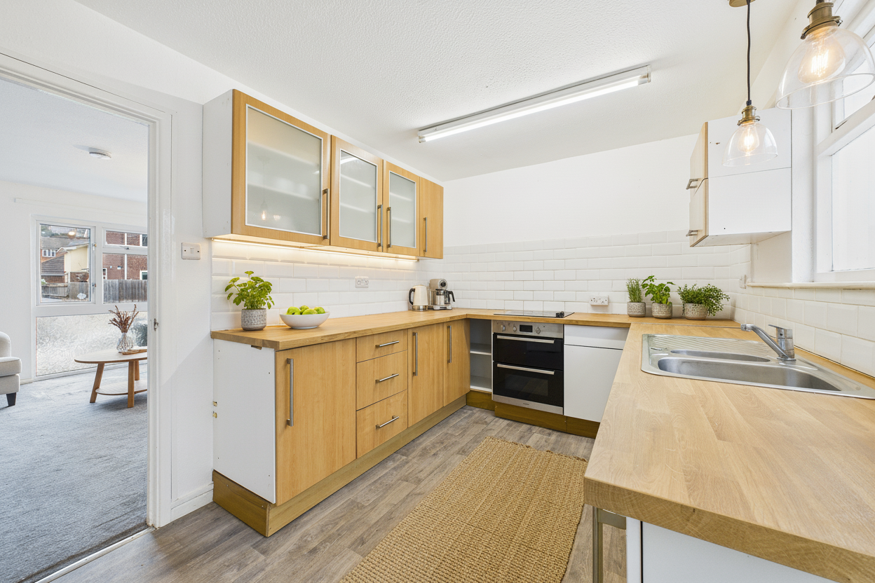 Outside to the front is a lawned garden with steps to the front door and to the rear, the back garden is south facing and has a seating area, area of lawn and is enclosed with fencing making it great for those with pets. There’s a pedestrian door to the garage which is in a block and accessed by car just down the hill. As mentioned, having a garage at this part of the market is unusual and especially one so close to the house.
